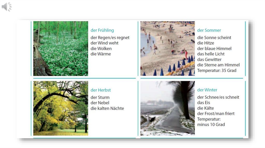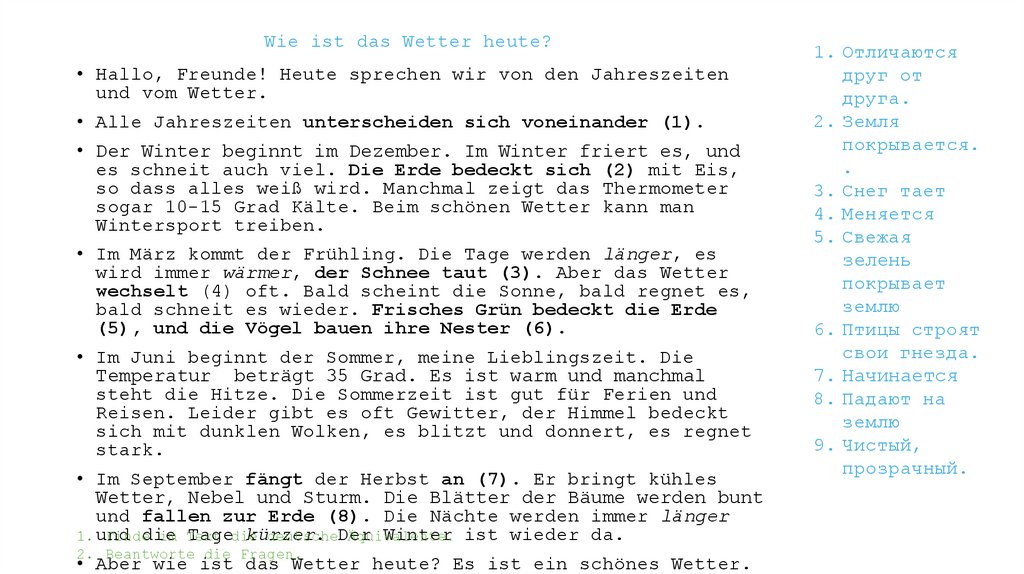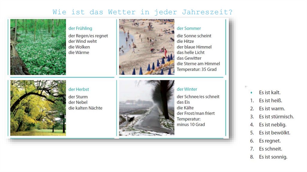Wie ist das Wetter heute?• Hallo, Freunde! Heute sprechen wir von den Jahreszeiten