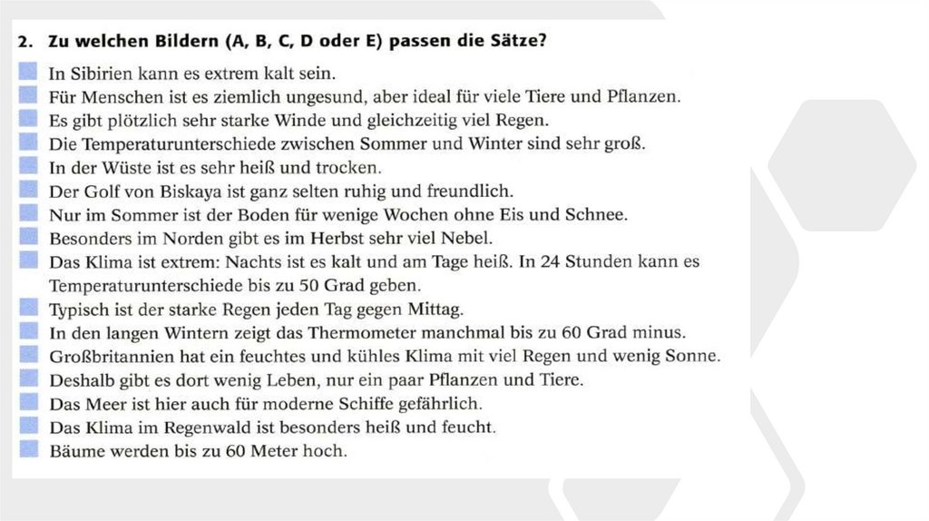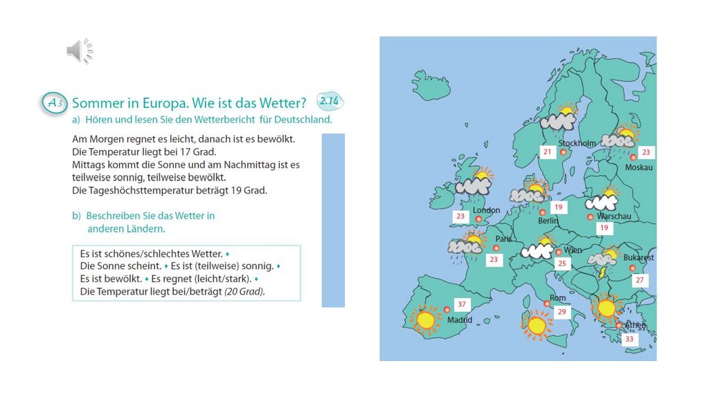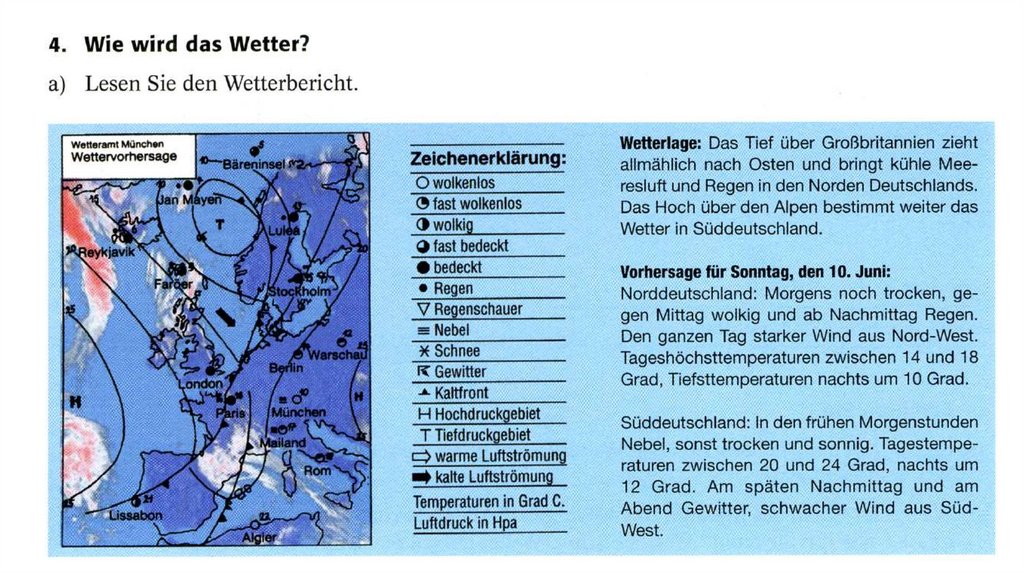 • Aber wie ist das Wetter heute? Es ist ein schönes Wetter.