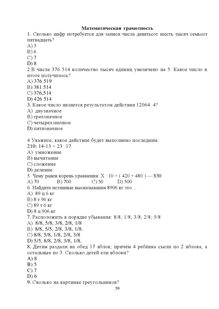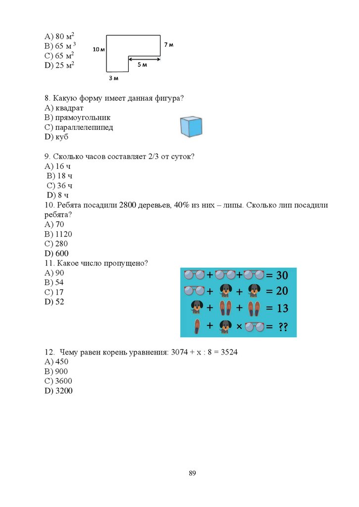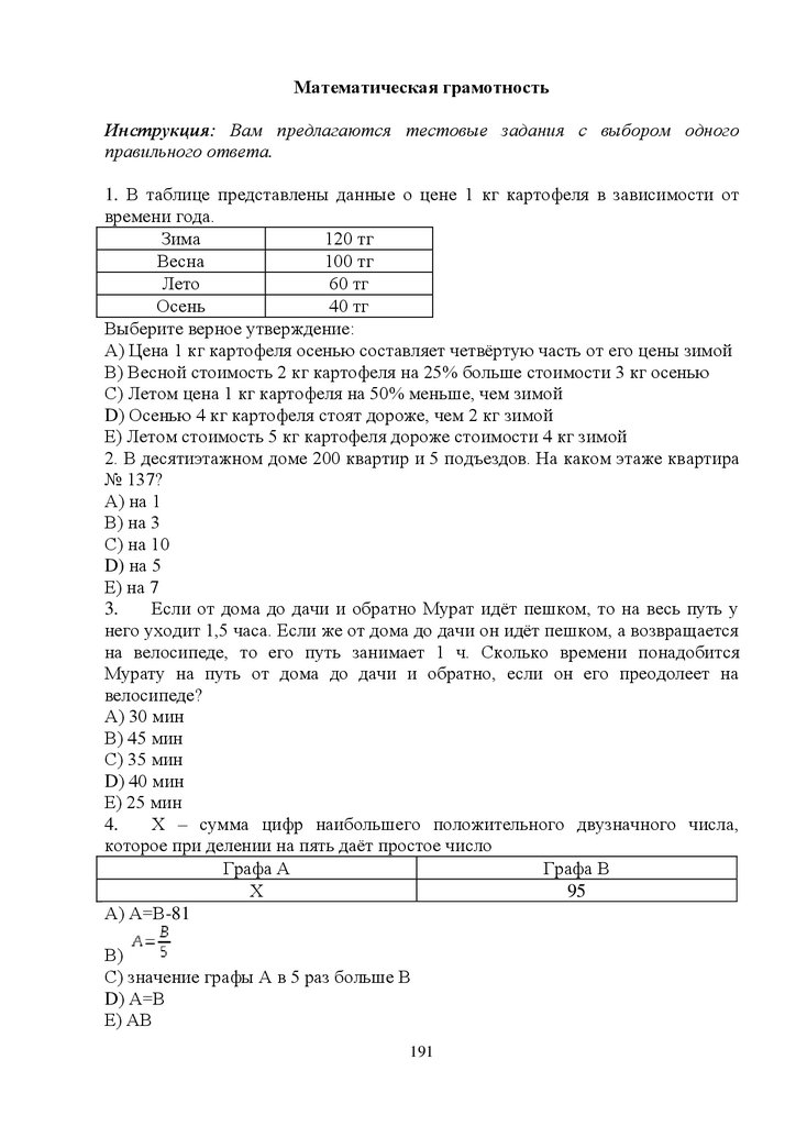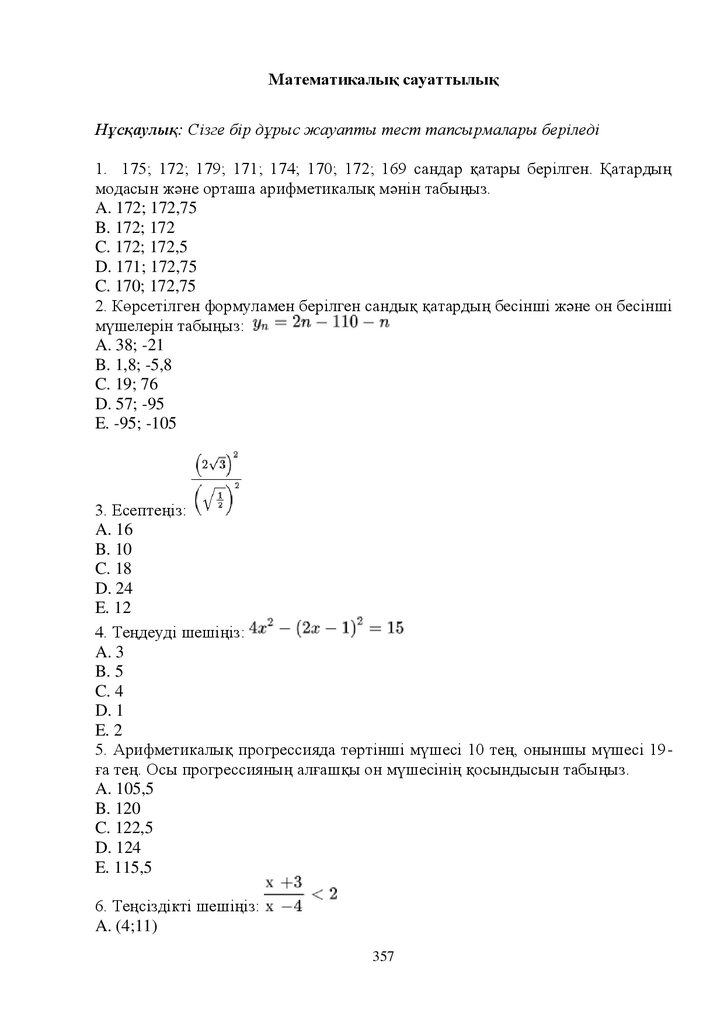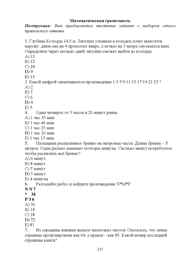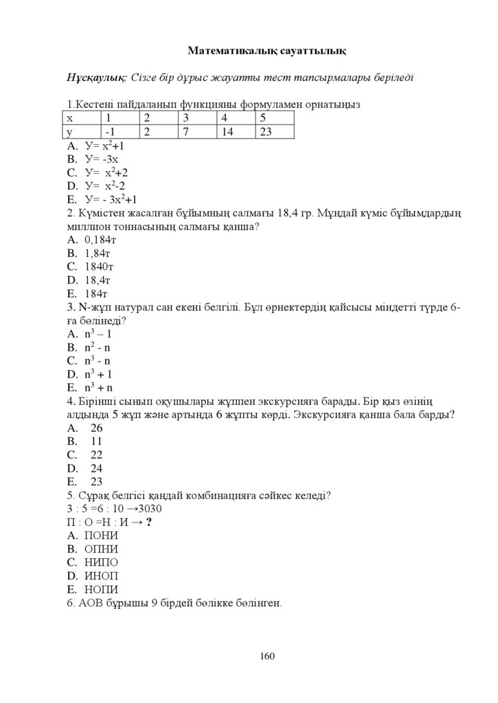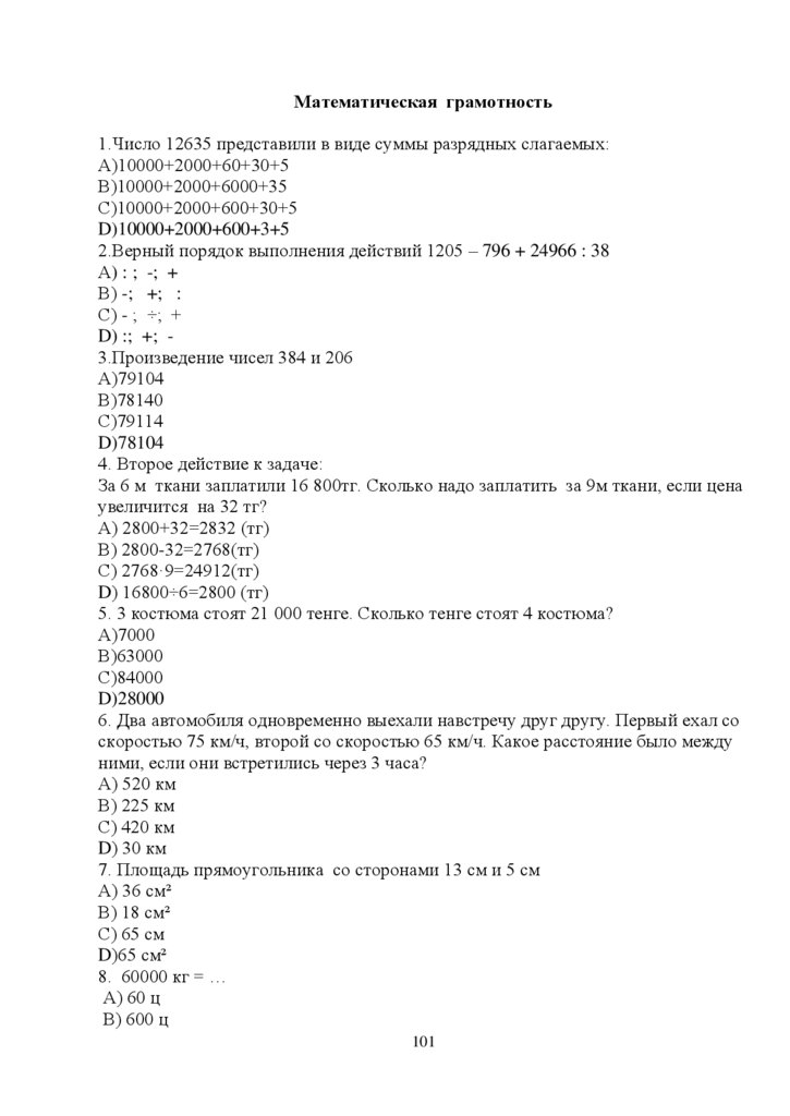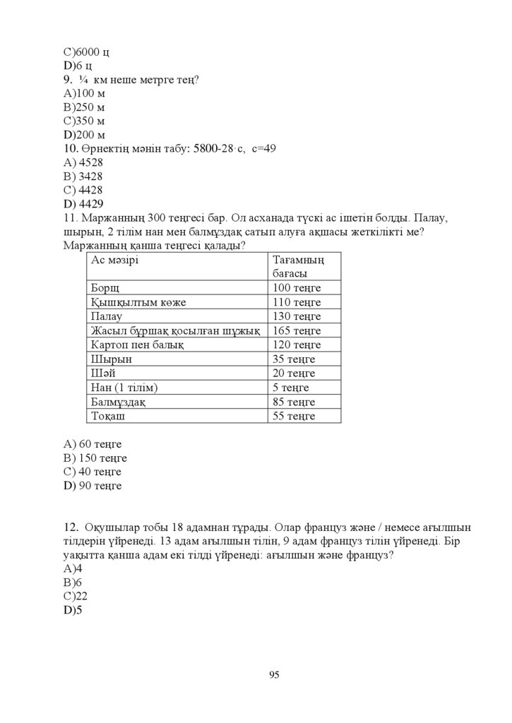 тапсырмасы; Математикалық сауаттылық – 12 тест тапсырмасы;