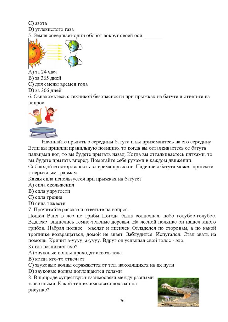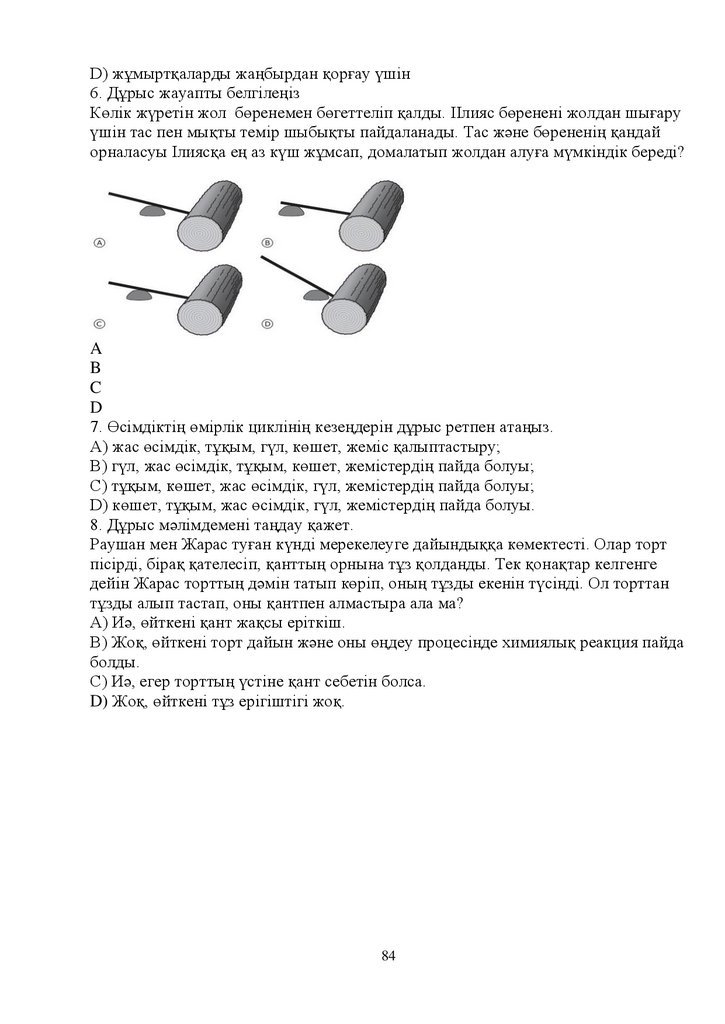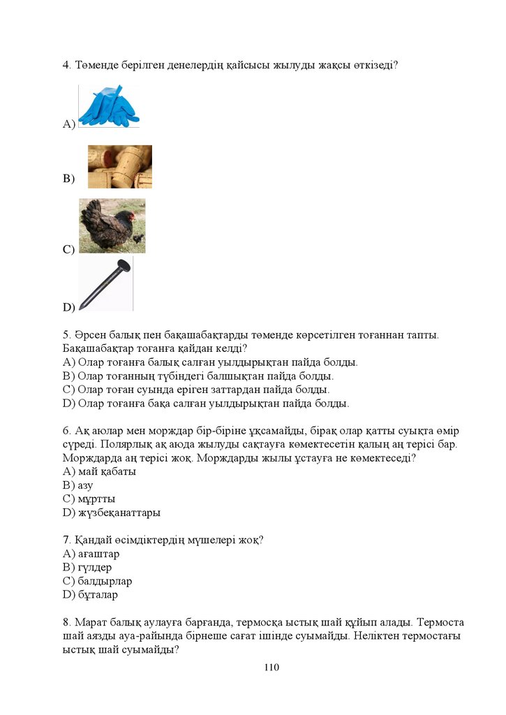 Жаратылыстану-ғылыми сауаттылық – 8 тест тапсырмасы. Тест