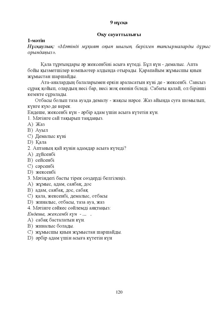 Нұсқаулық: Мәтінді мұқият оқып, берілген тапсырмаларға дұрыс жауап