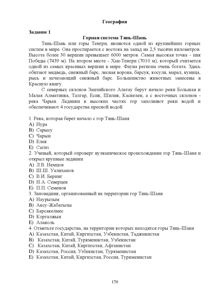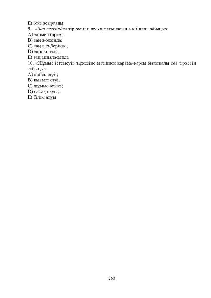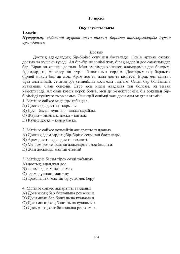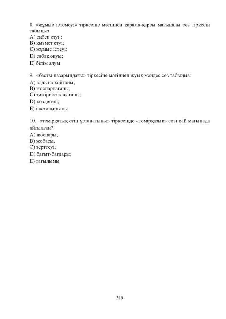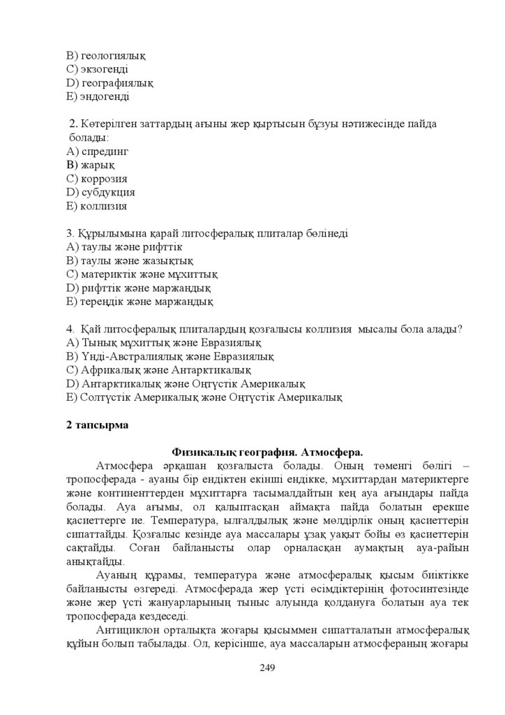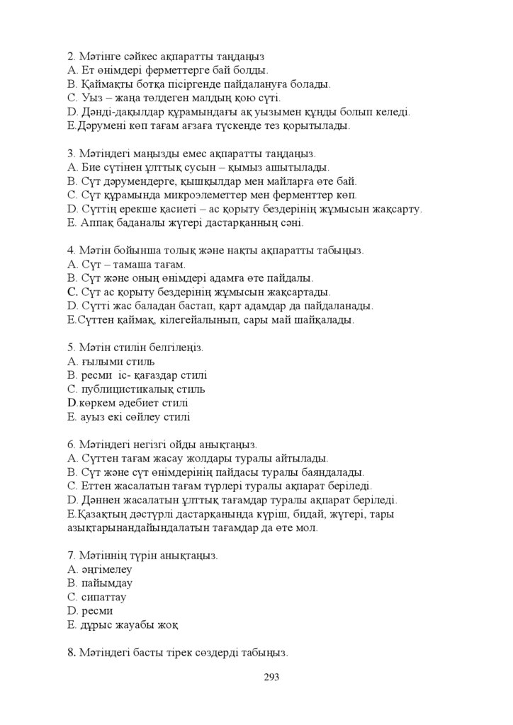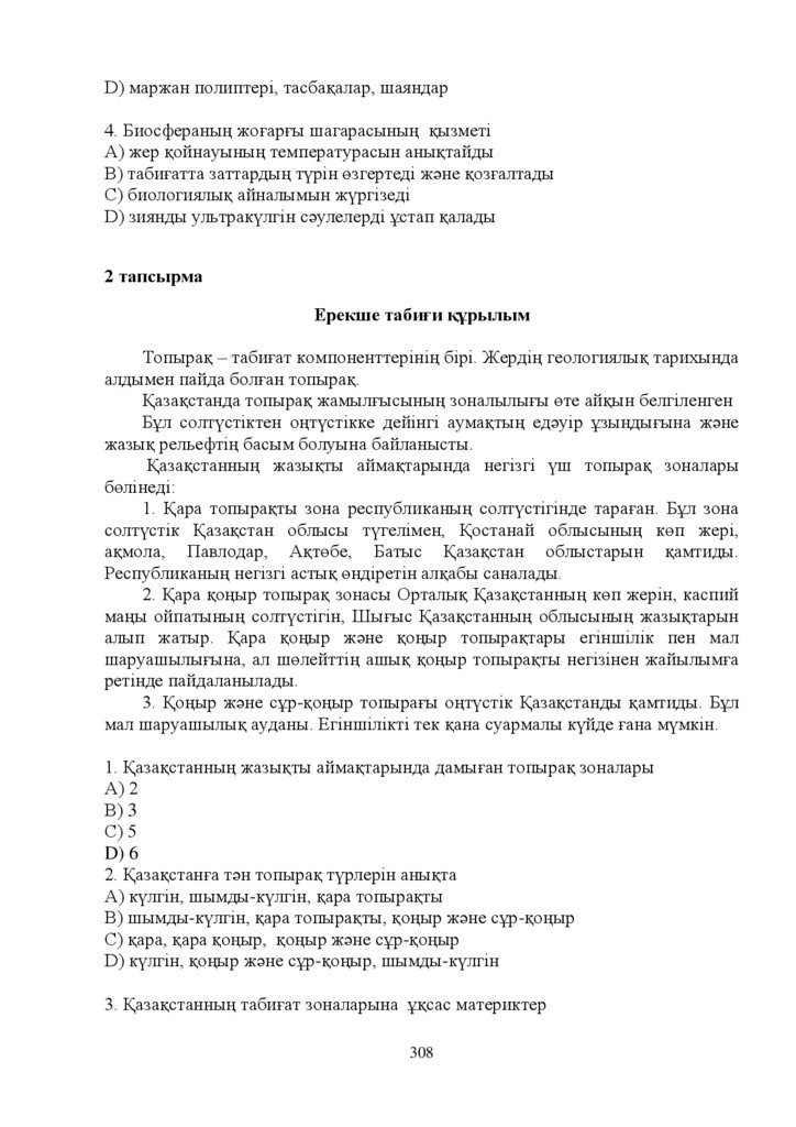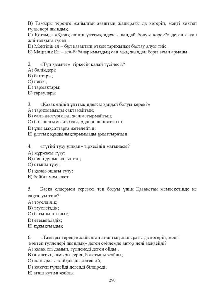 тексеру сұрақтарынан құралады. Жаңа форматтағы сынақ тест жинағында әр