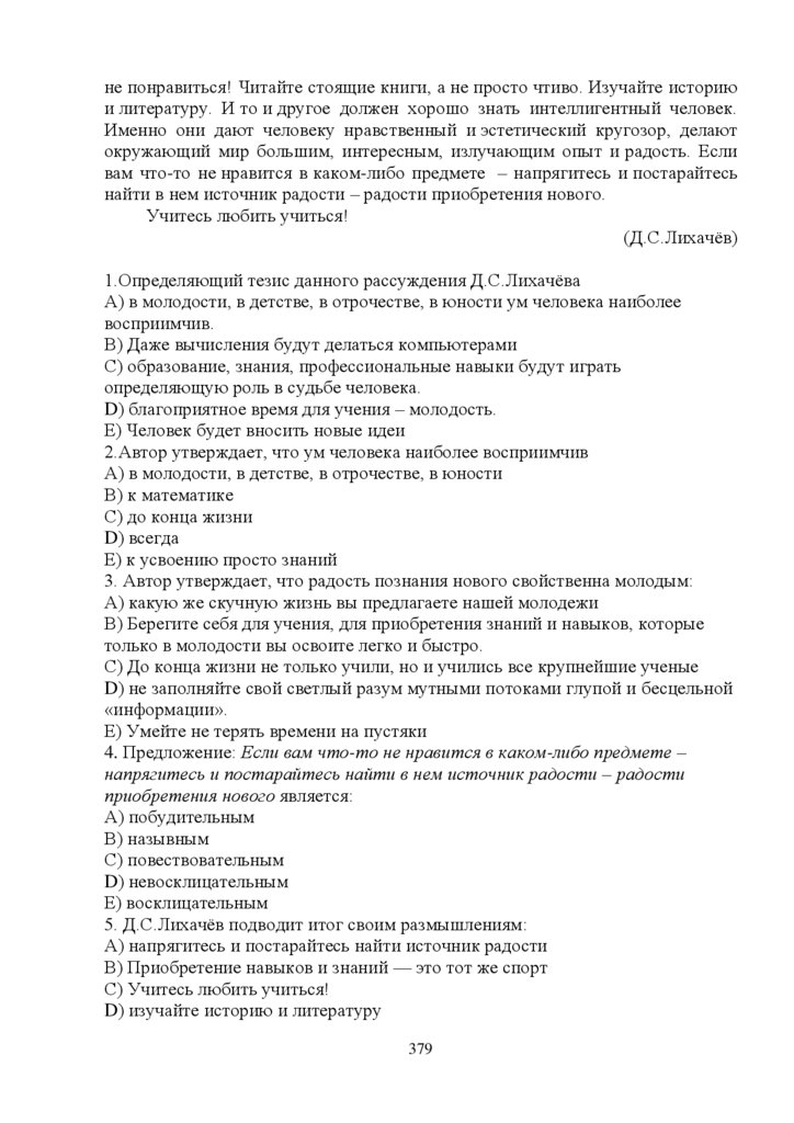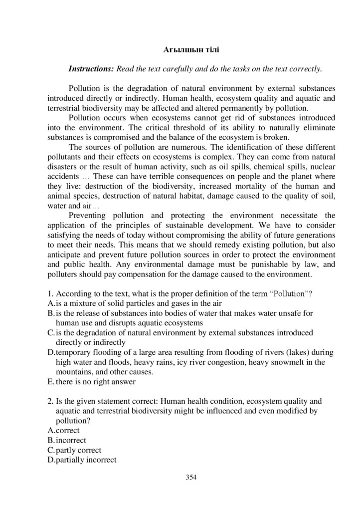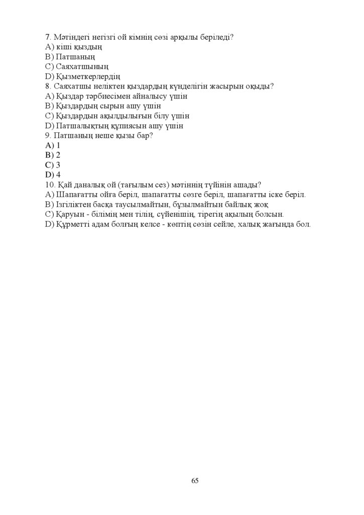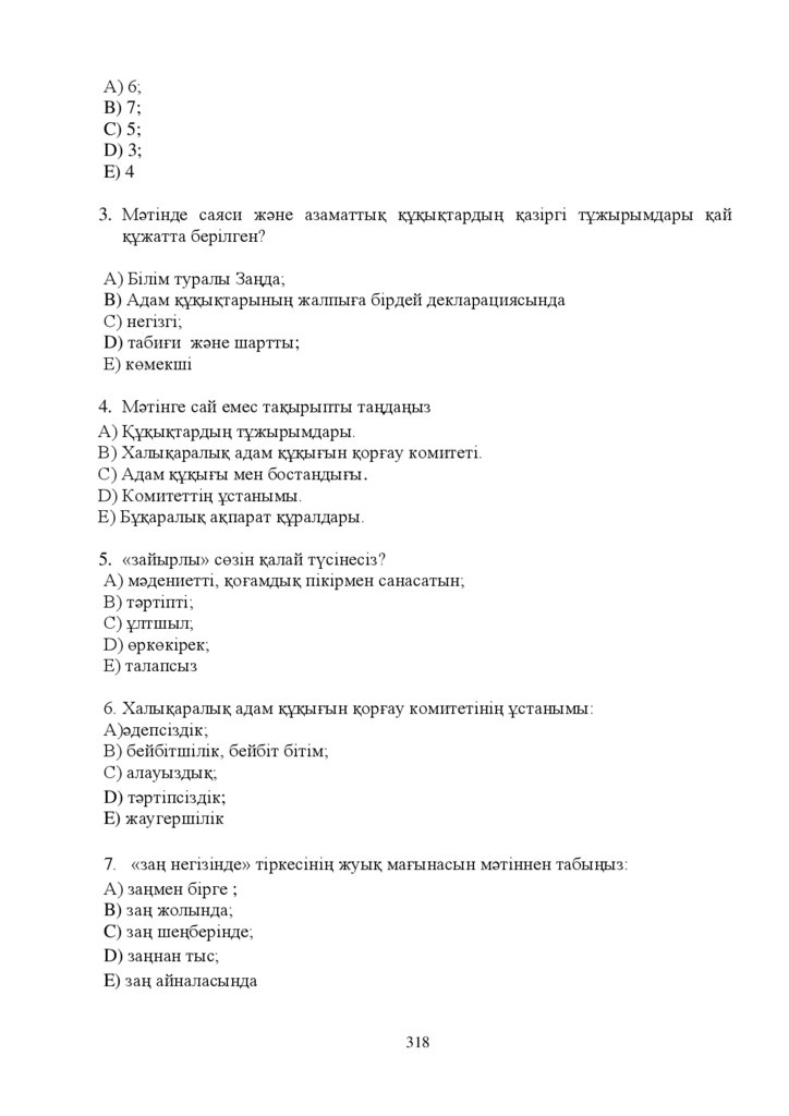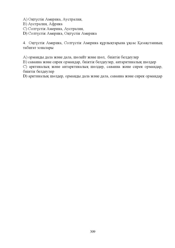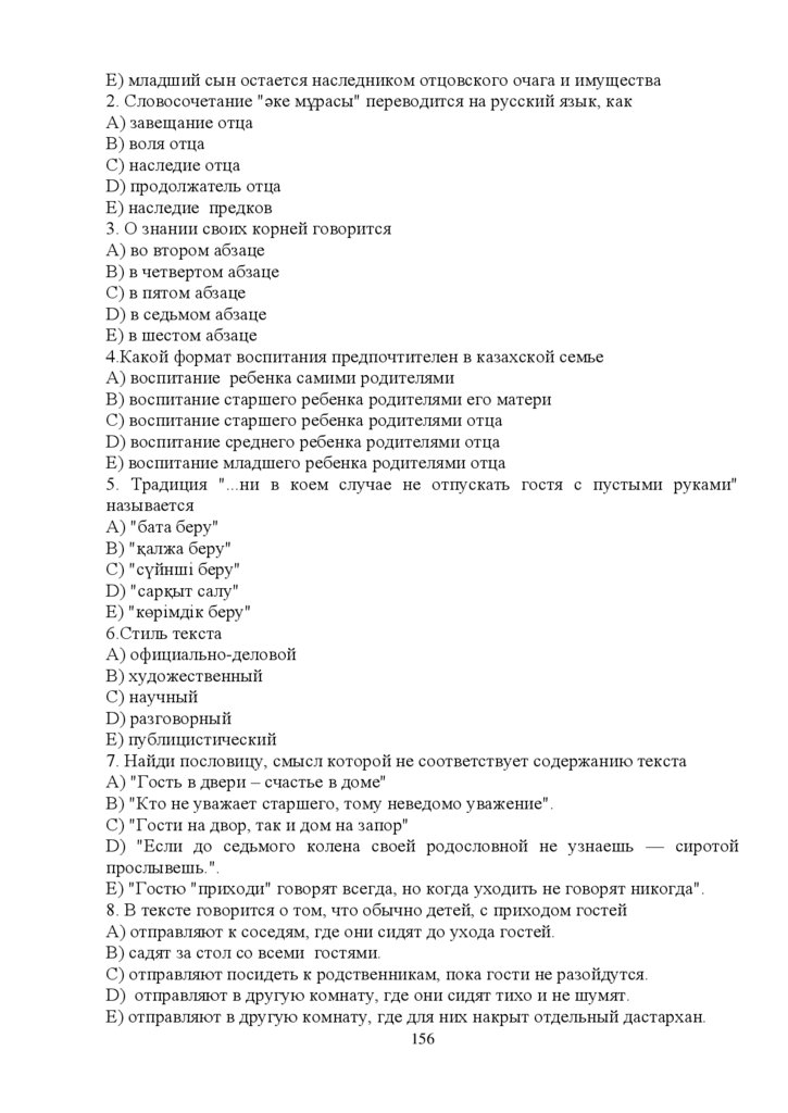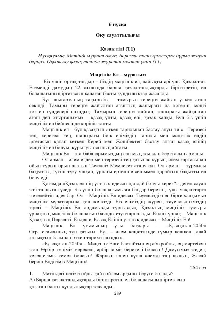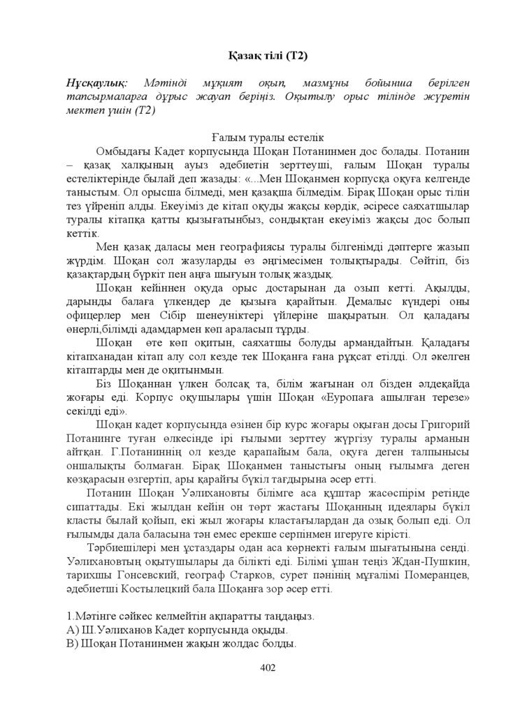 тексеру сұрақтарынан құралады. Жаңа форматтағы сынақ тест жинағында әр