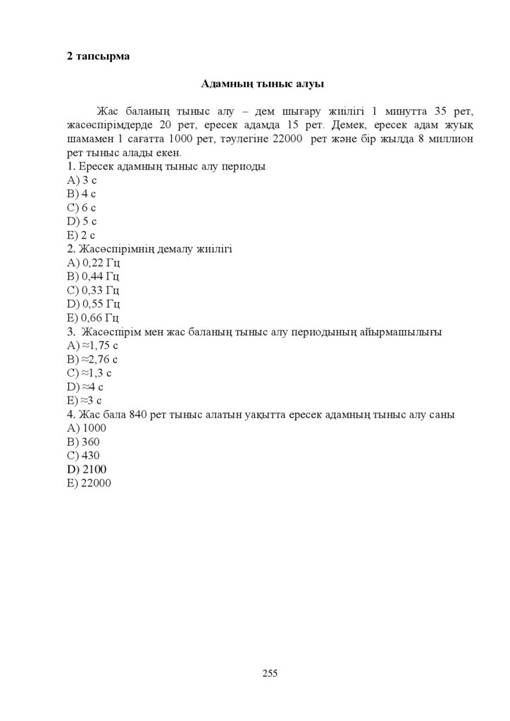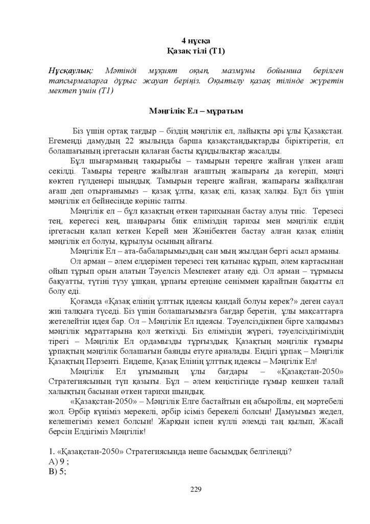 тапсырмаларының форматы: бір дұрыс жауапты таңдауға арналған. Тестті