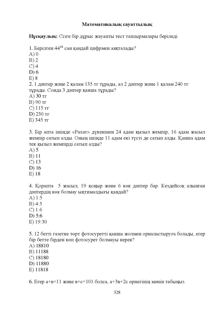 берілген тест тапсырмаларының мазмұны Мемлекеттік жалпыға міндетті білім