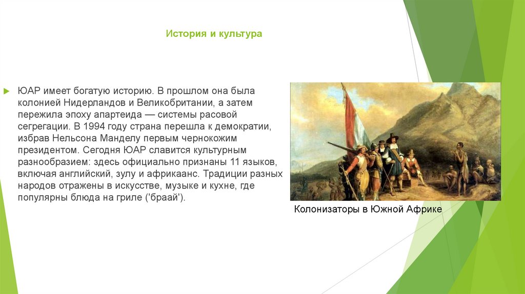 История и культураЮАР имеет богатую историю. В прошлом она была