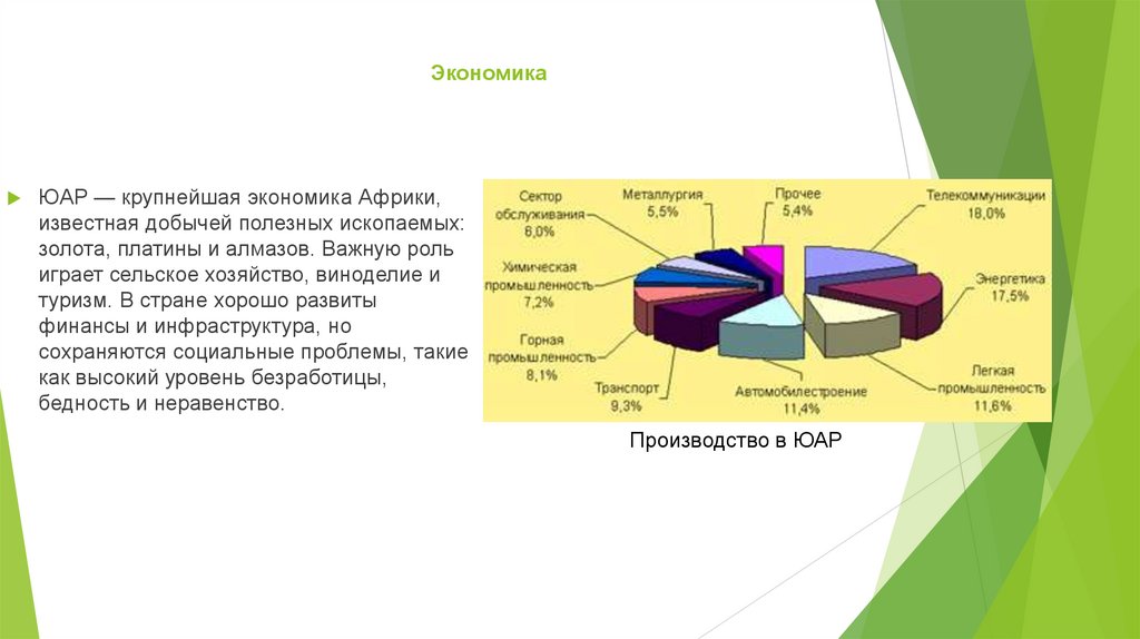 ЭкономикаЮАР — крупнейшая экономика Африки,