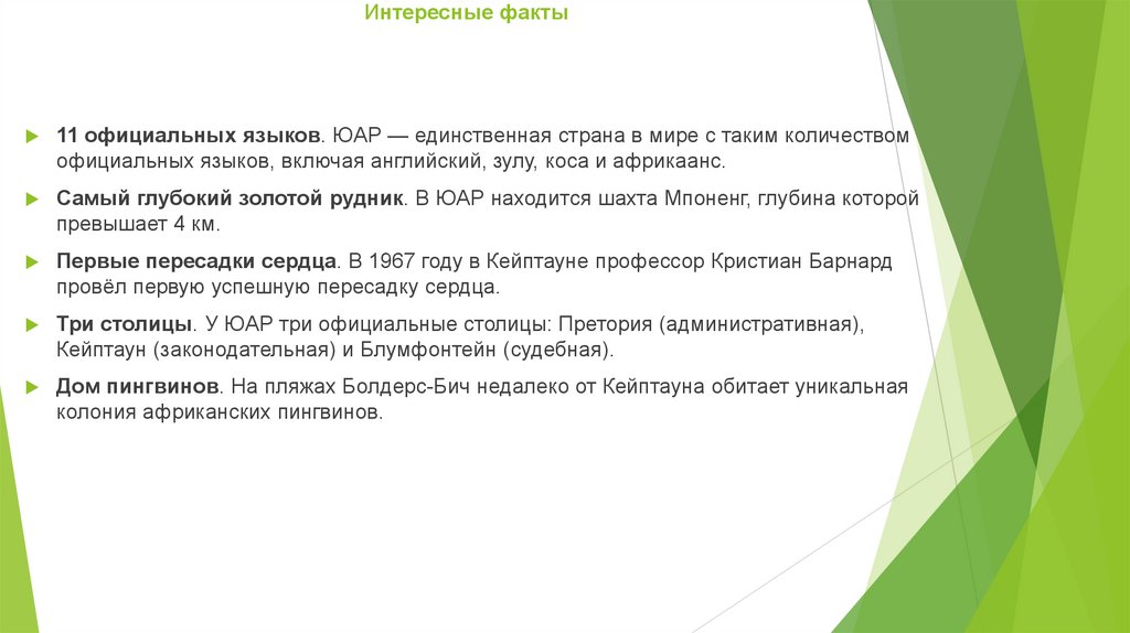 Интересные факты11 официальных языков. ЮАР — единственная страна в мире с таким количеством
