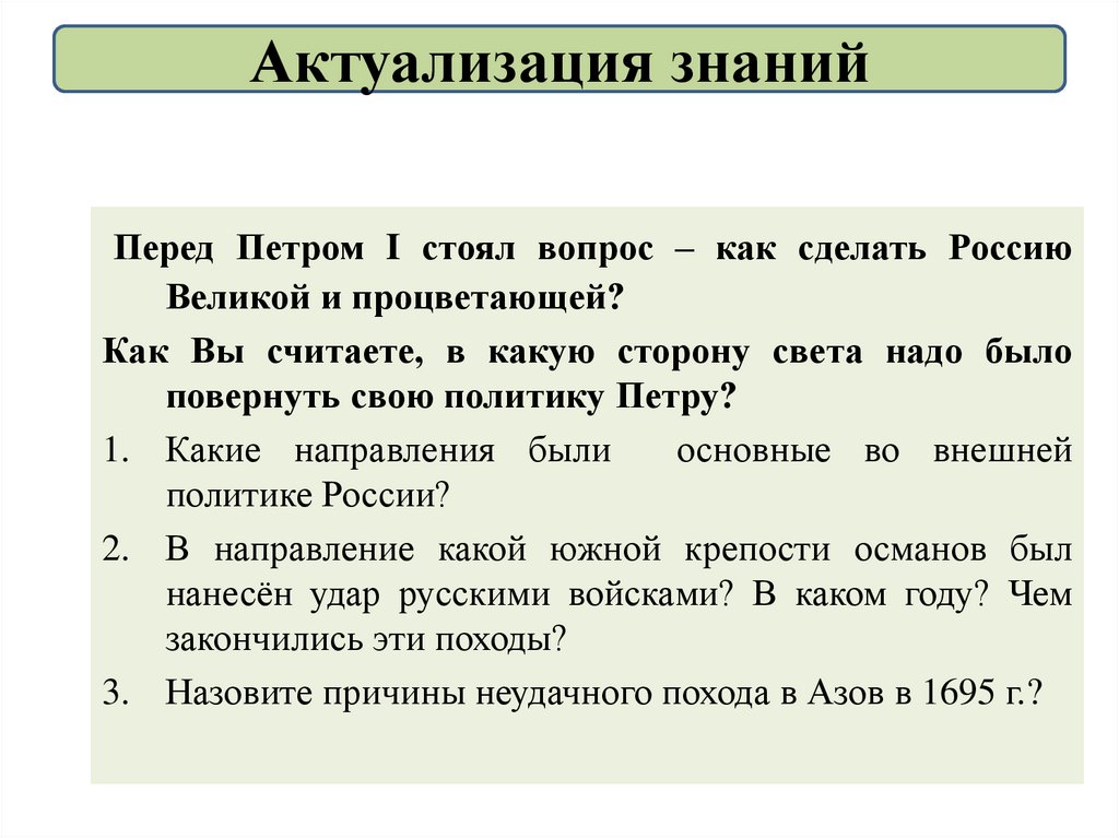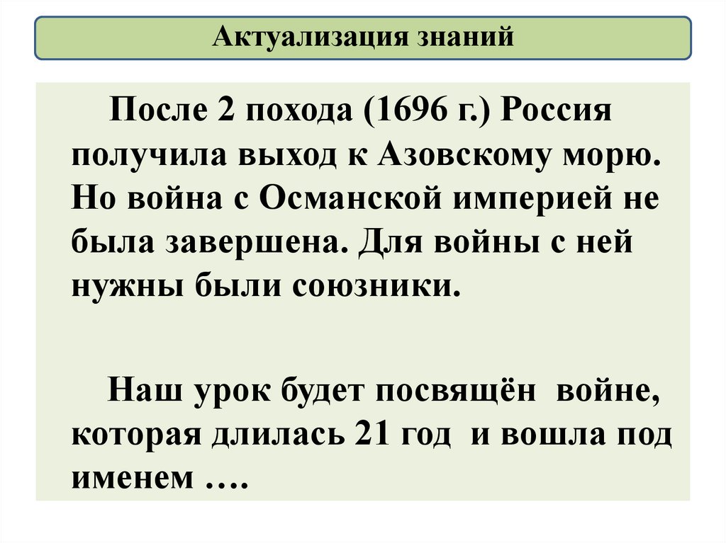 Актуализация знанийПосле 2 похода (1696 г.) Россия