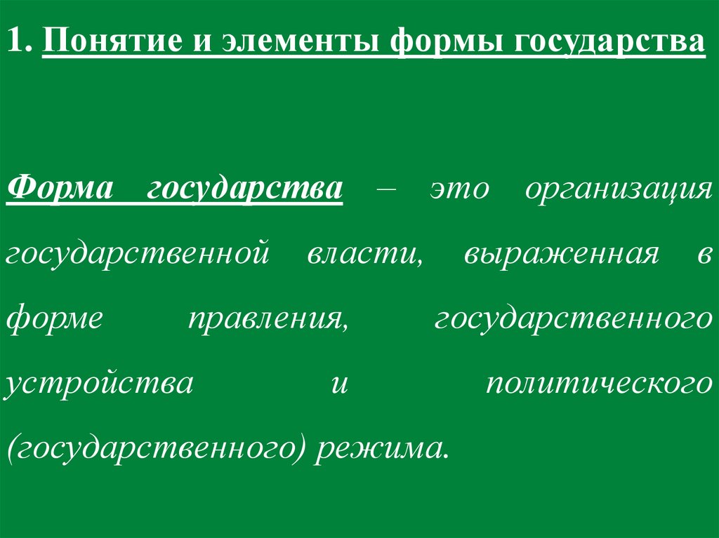 1. Понятие и элементы формы государстваФорма государства – это организация
