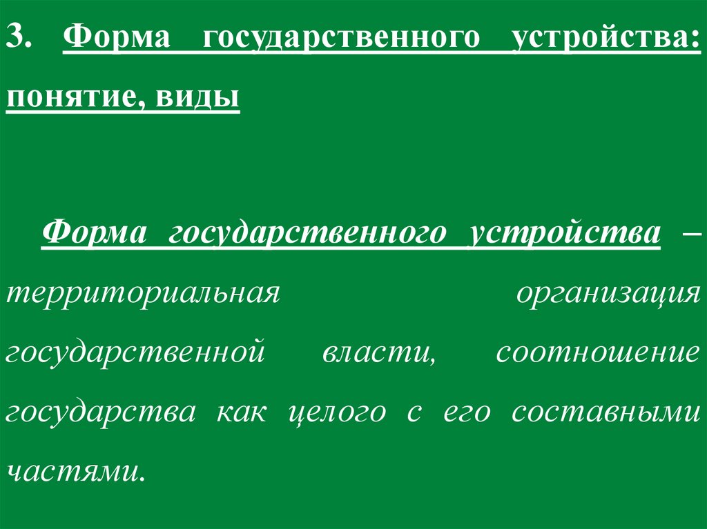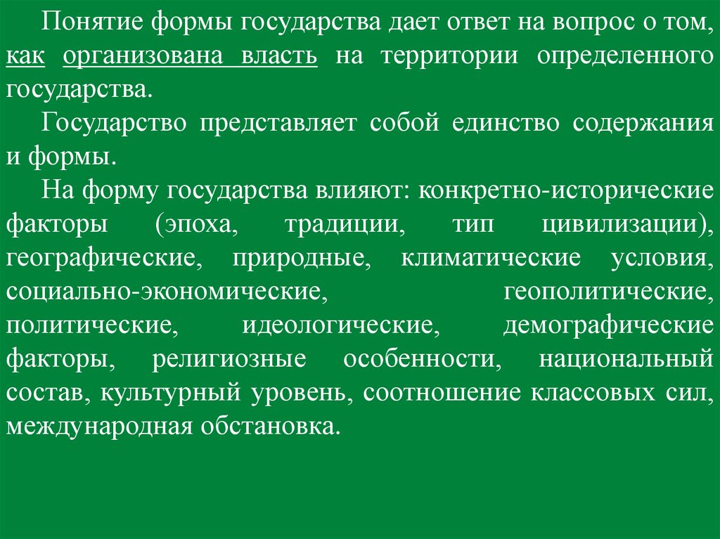 Понятие формы государства дает ответ на вопрос о том,как организована власть на территории определенного