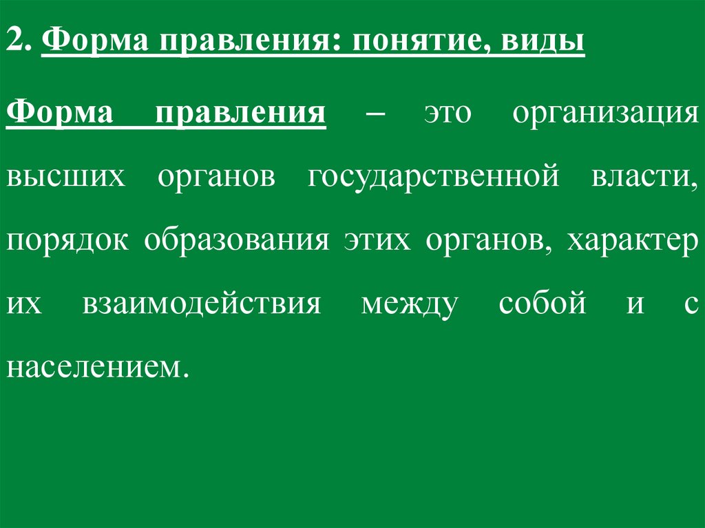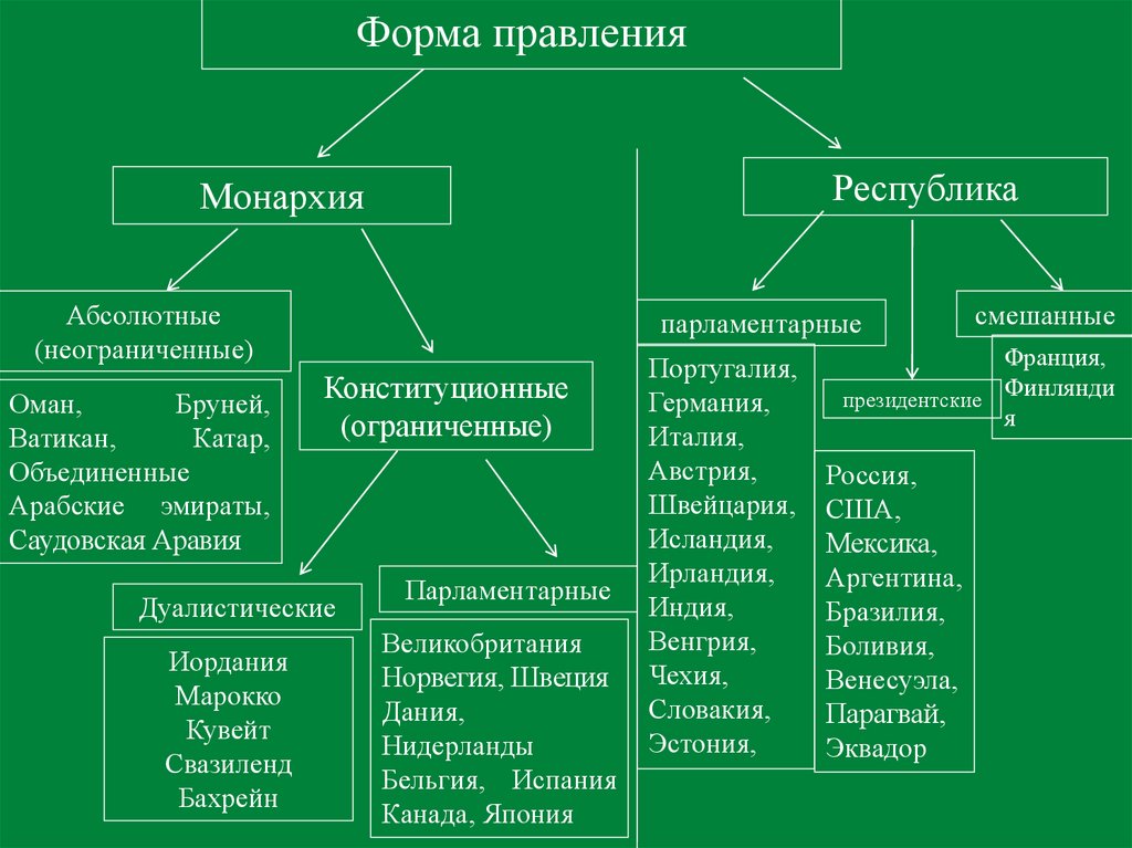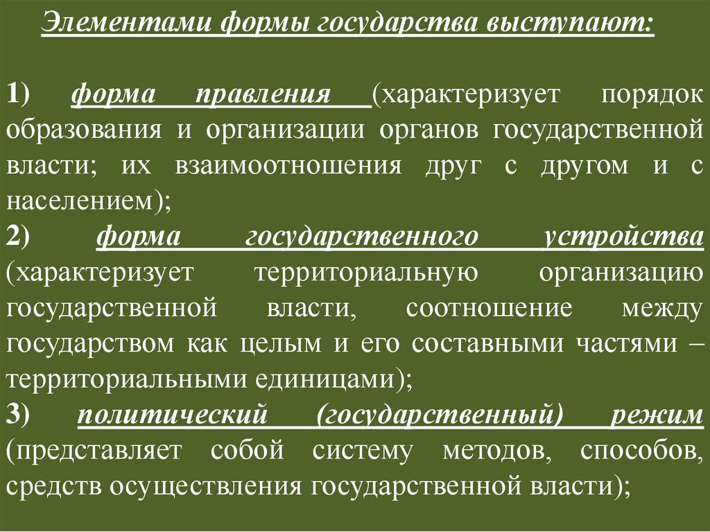 Элементами формы государства выступают:1) форма правления (характеризует порядок