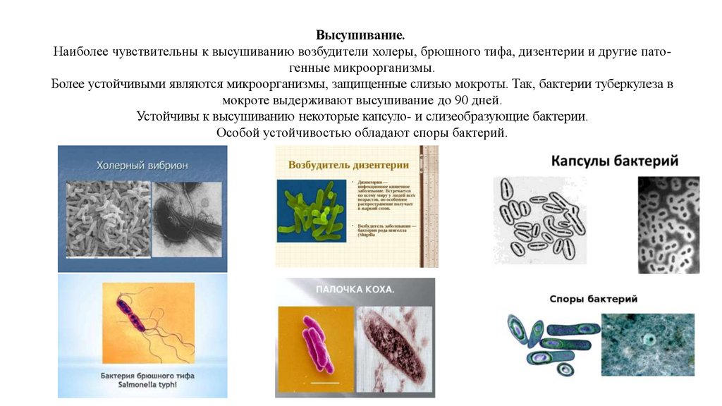 Устойчивы к высушиванию некоторые капсуло- и слизеобразующие бактерии.