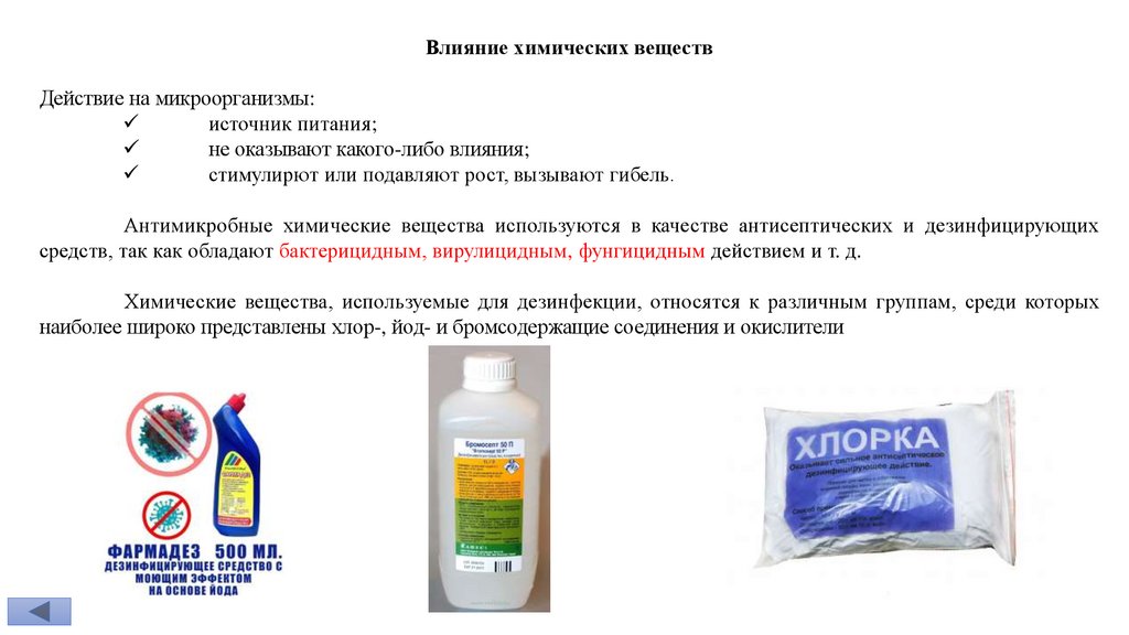 Антимикробные химические вещества используются в качестве антисептических и дезинфицирующих