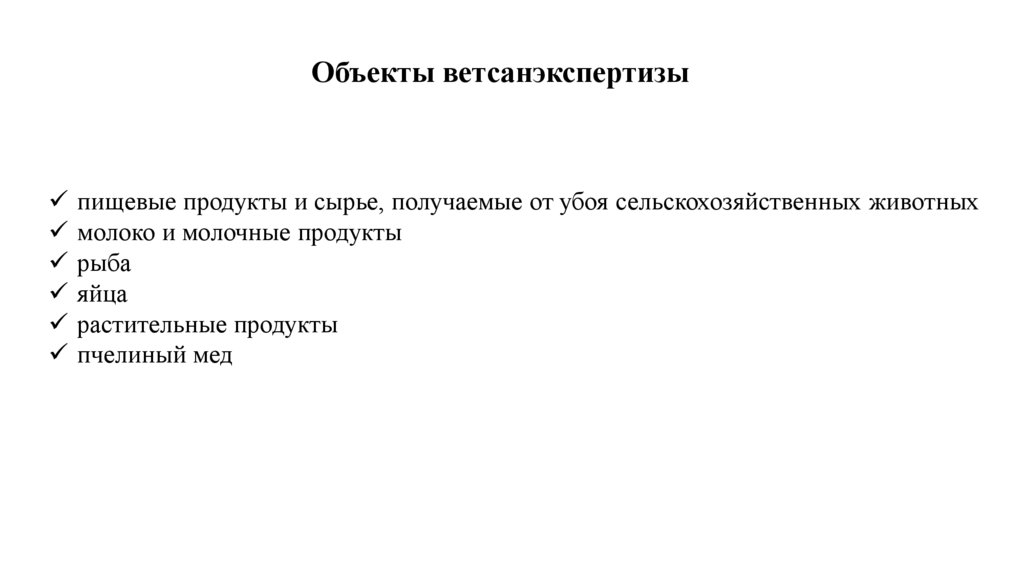 Объекты ветсанэкспертизыпищевые продукты и сырье, получаемые от убоя сельскохозяйственных животных