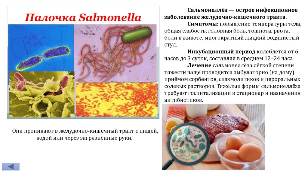 Сальмонеллёз — острое инфекционноезаболевание желудочно-кишечного тракта.