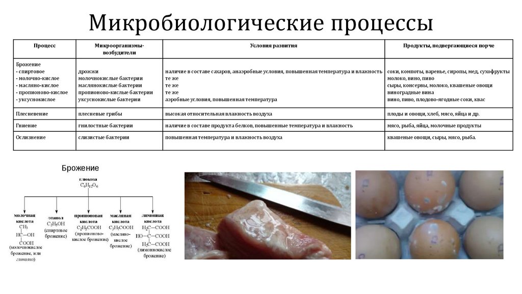 наличие в составе сахаров, анаэробные условия, повышенная температура и влажность