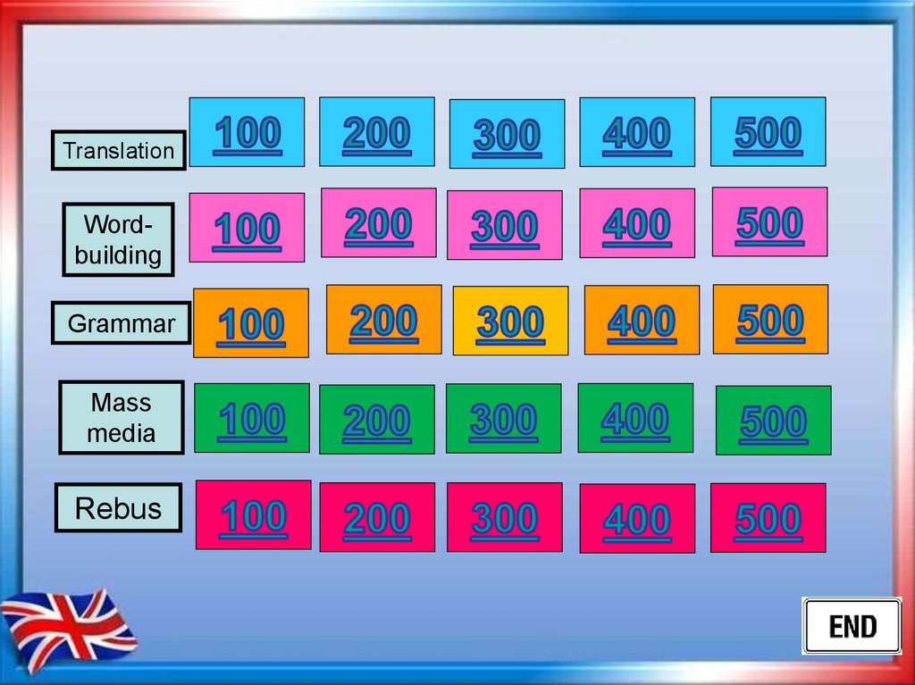 Своя игра По теме: Adjectives. Past, Present and Future Simple