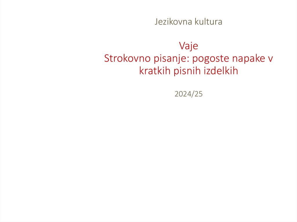 Vaje Strokovno pisanje: pogoste napake v kratkih pisnih izdelkih 2024/25