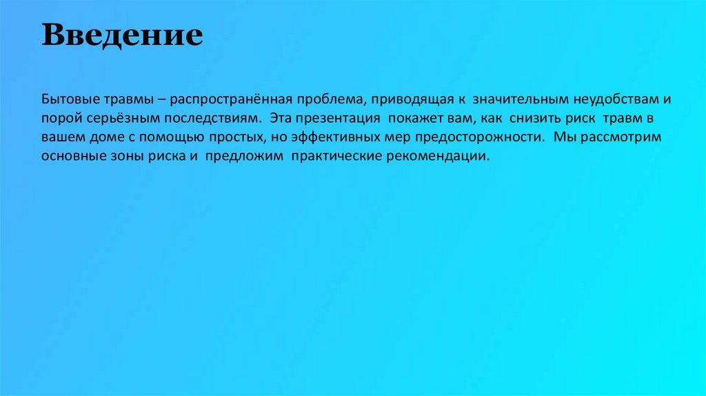 ВведениеБытовые травмы – распространённая проблема, приводящая к значительным неудобствам и