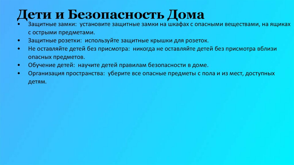 Организация пространства: уберите все опасные предметы с пола и из мест, доступных