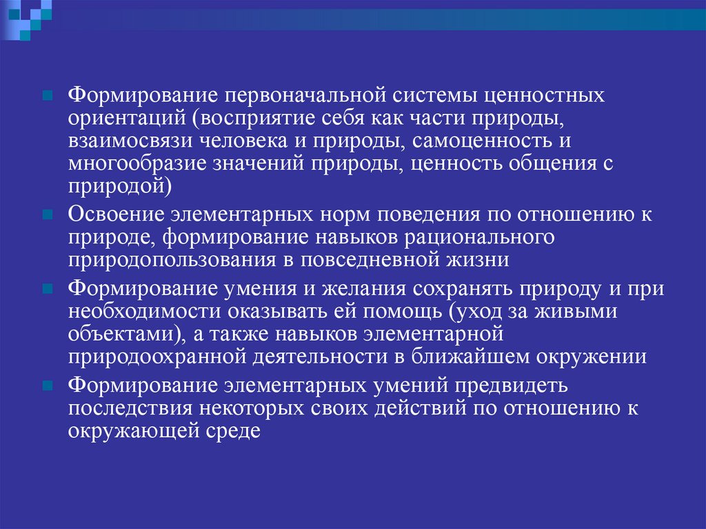 Формирование первоначальной системы ценностныхориентаций (восприятие себя как части природы,