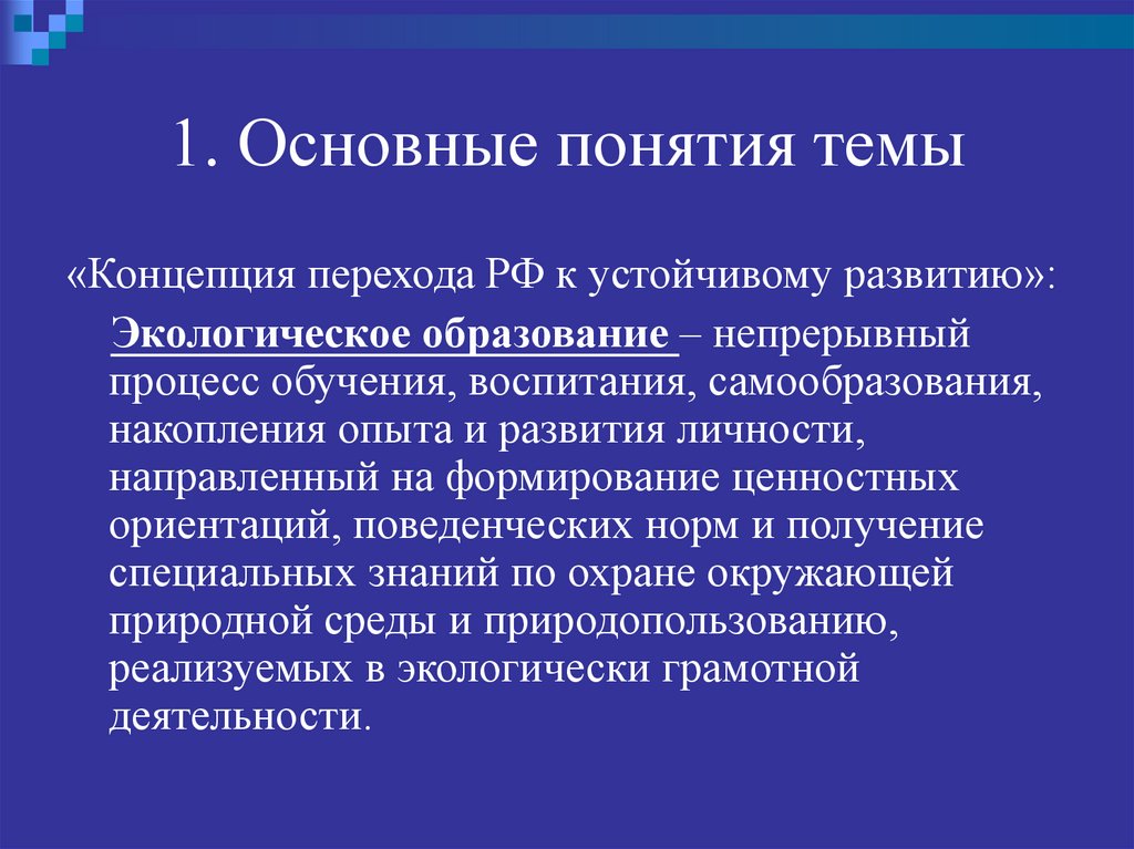1. Основные понятия темы«Концепция перехода РФ к устойчивому развитию»:
