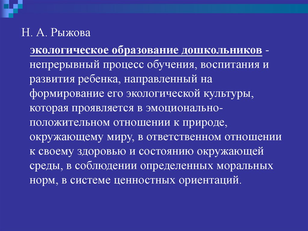 Н. А. Рыжоваэкологическое образование дошкольников непрерывный процесс обучения, воспитания и