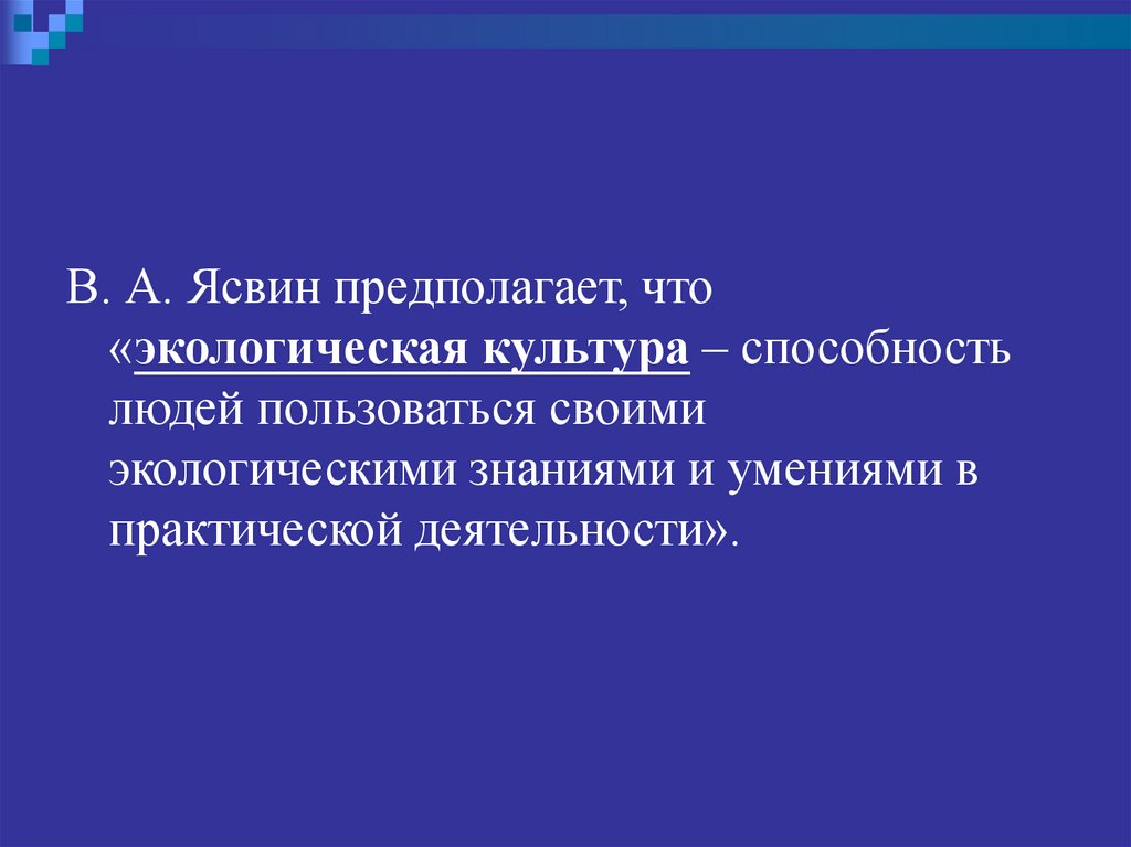 В. А. Ясвин предполагает, что«экологическая культура – способность
