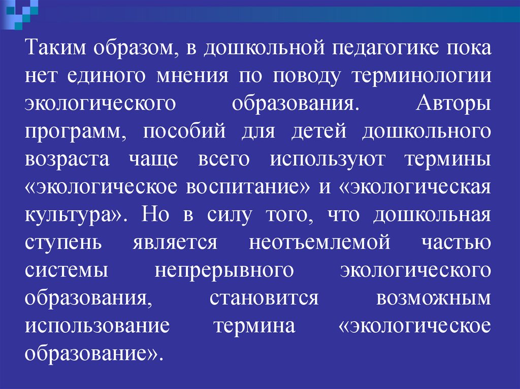 Таким образом, в дошкольной педагогике поканет единого мнения по поводу терминологии