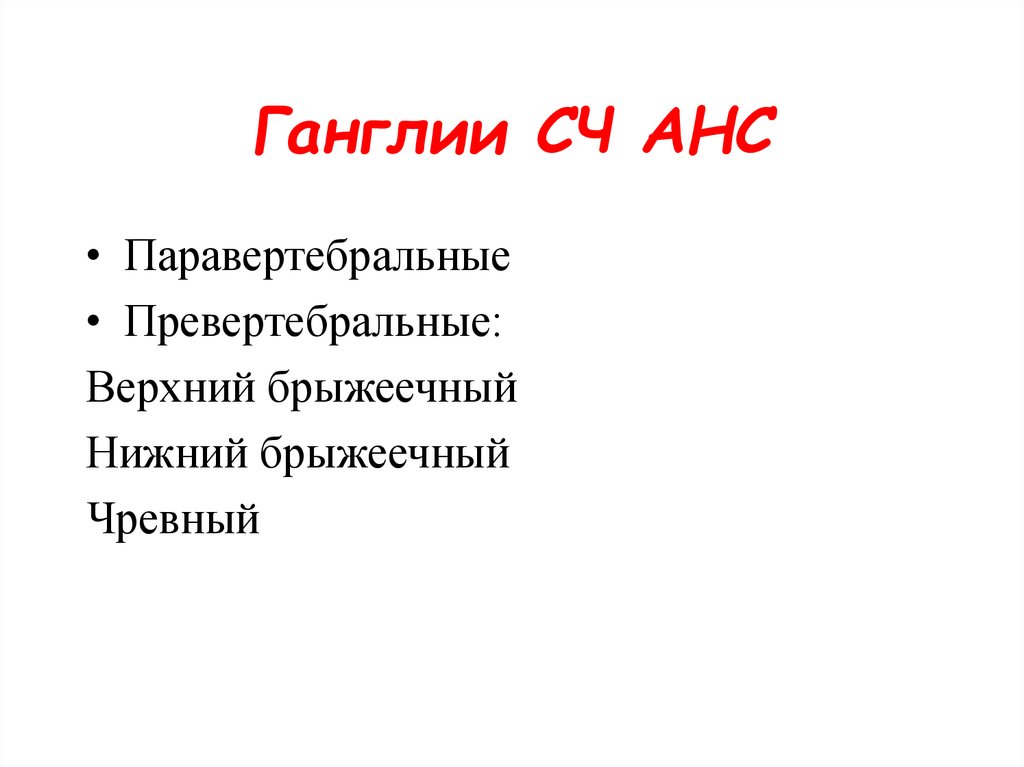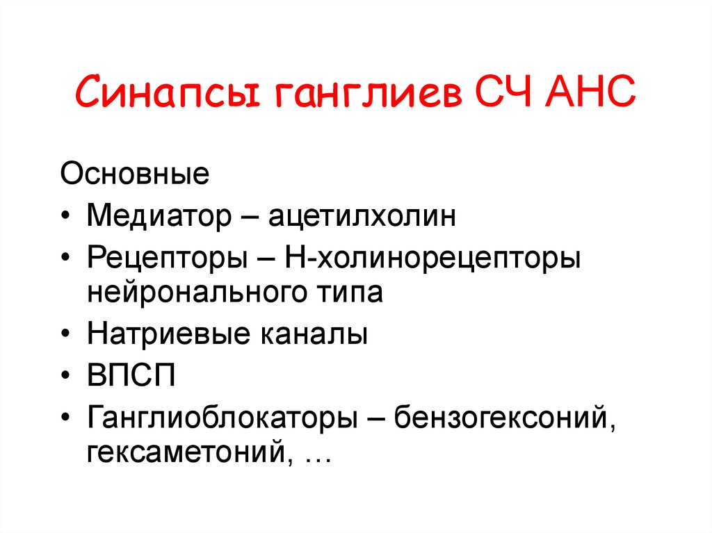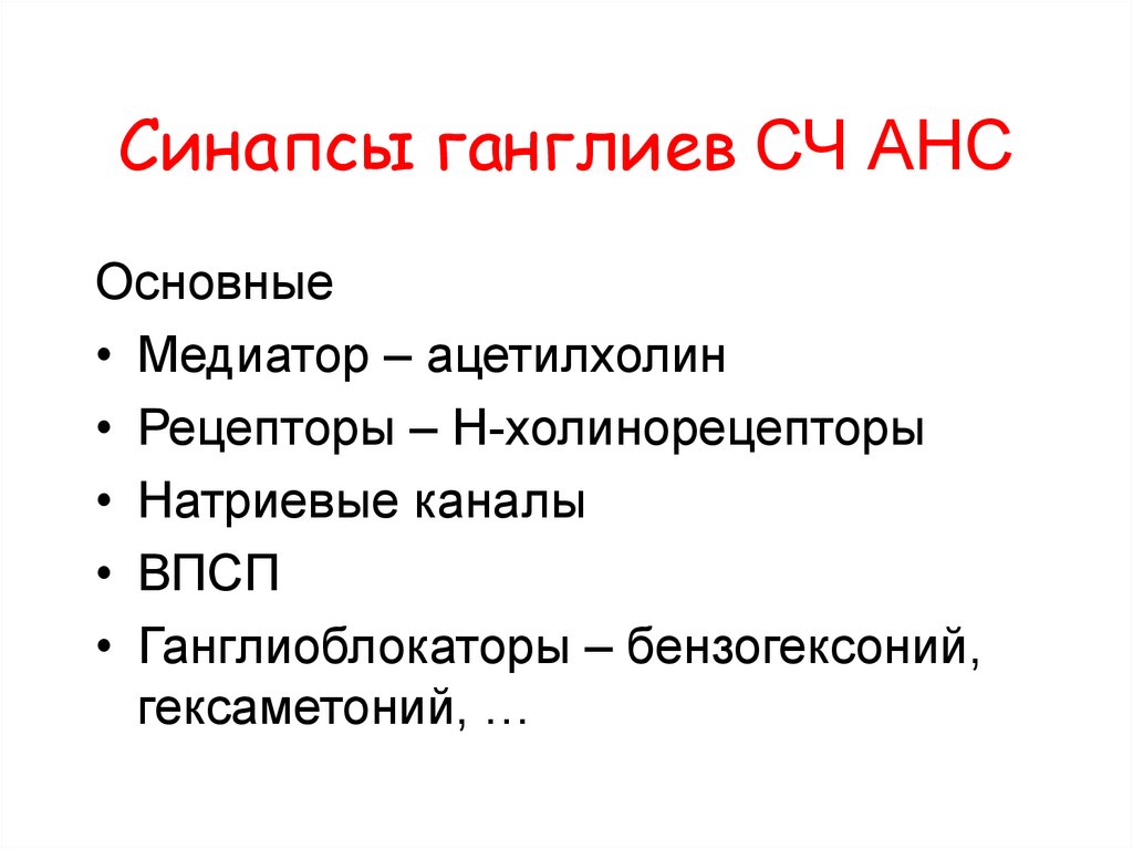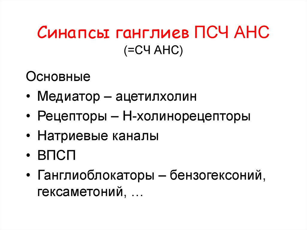 Синапсы ганглиев ПСЧ АНС(=СЧ АНС)