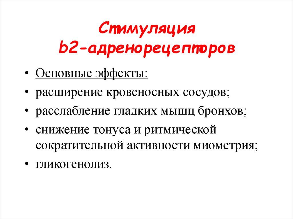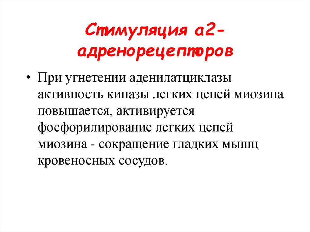Стимуляция a2адренорецепторов• Основной эффект: