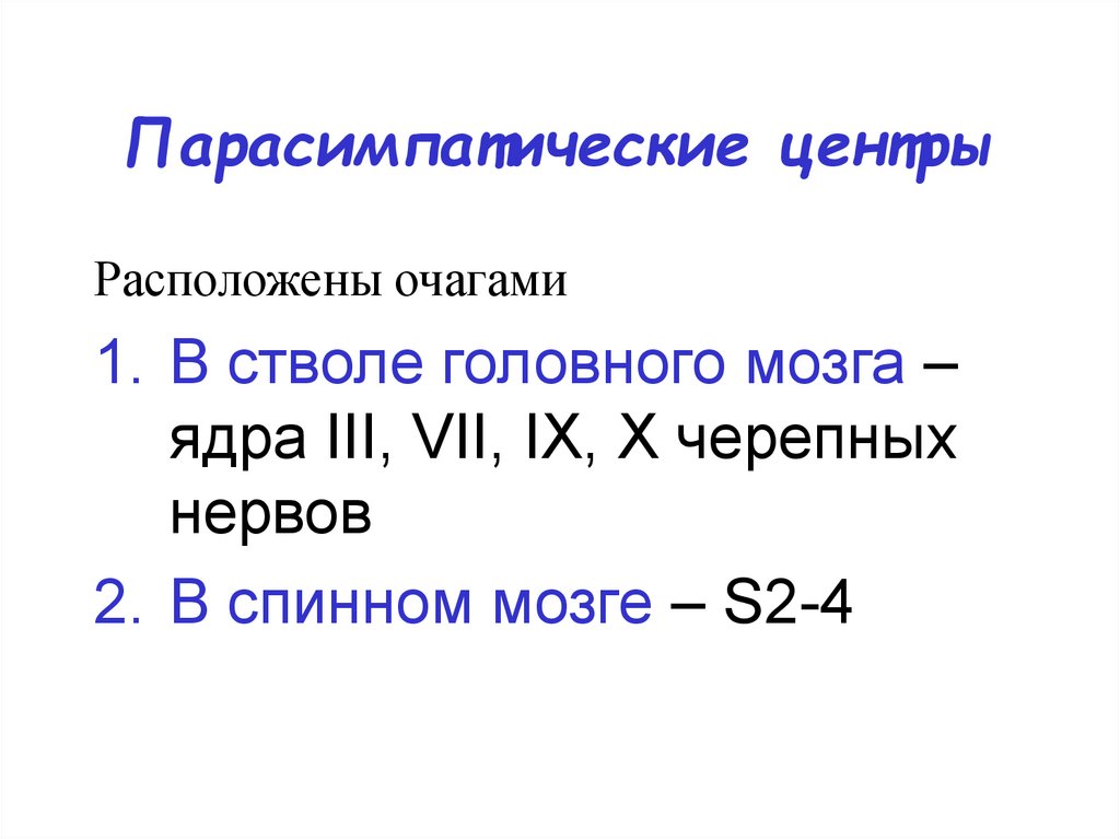 Парасимпатические центрыРасположены очагами