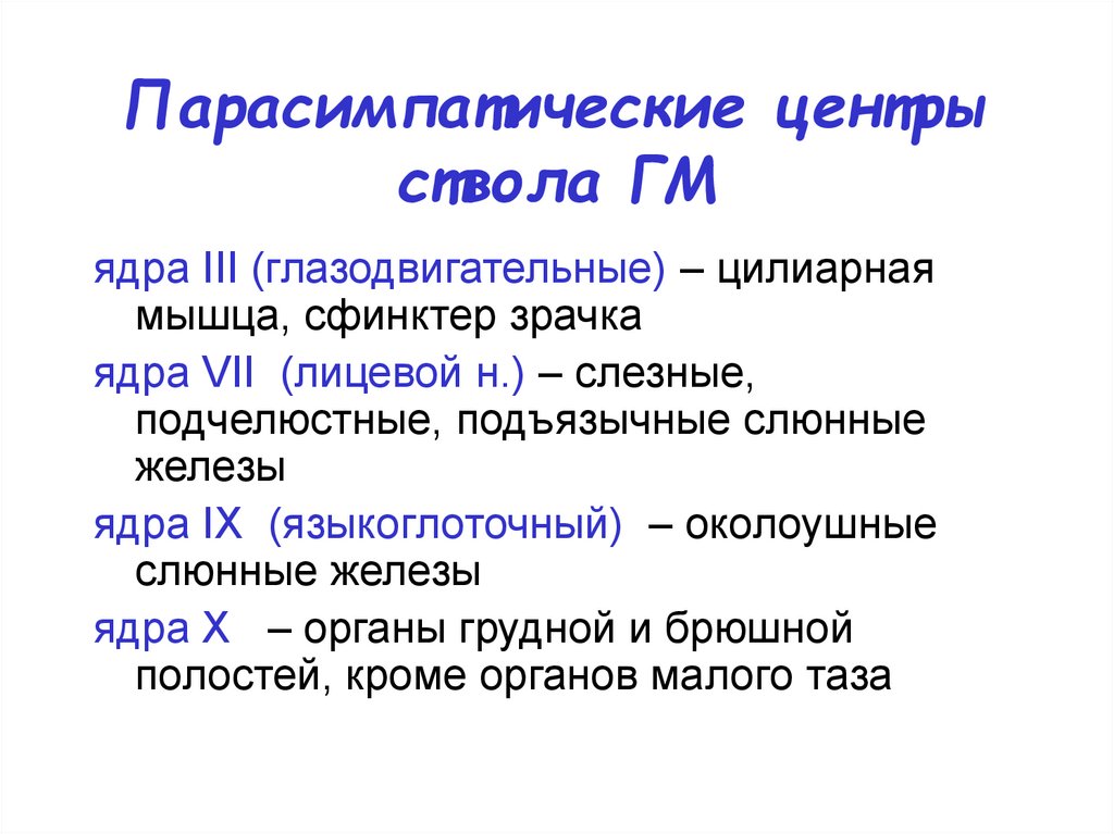 Парасимпатические центрыствола ГМ