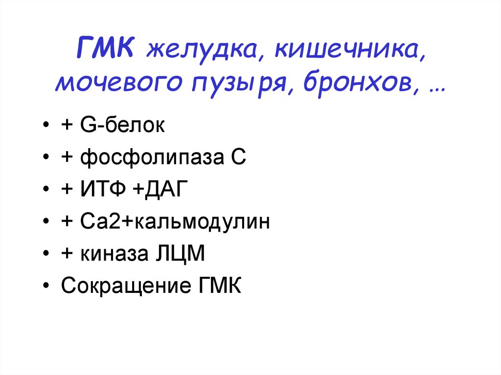 ГМК желудка, кишечника,мочевого пузыря, бронхов, …