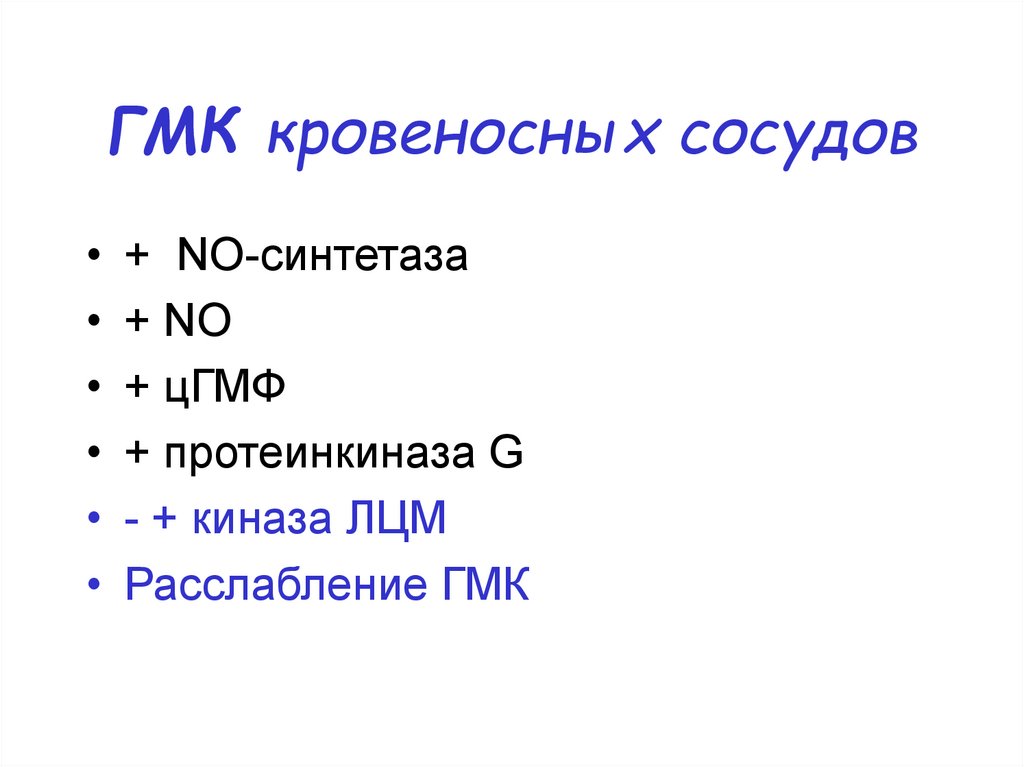 ГМК кровеносных сосудов• + NO-синтетаза