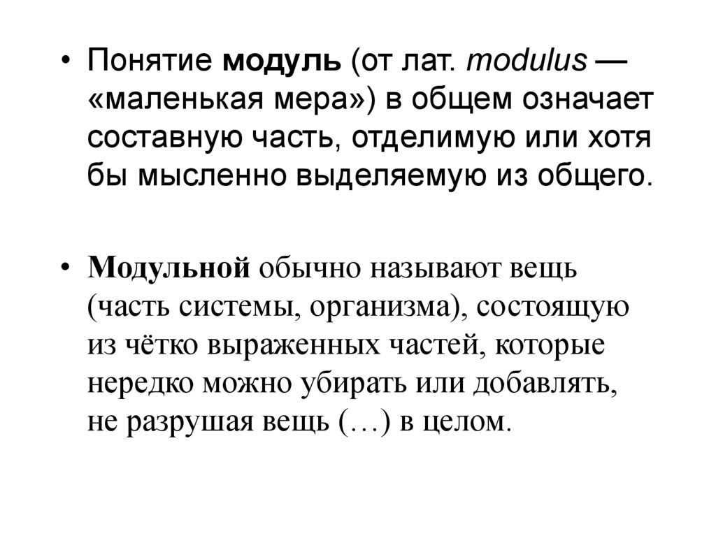 • Понятие модуль (от лат. modulus —«маленькая мера») в общем означает