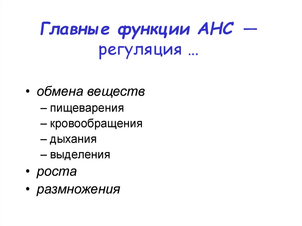 Главные функции АНС —регуляция …