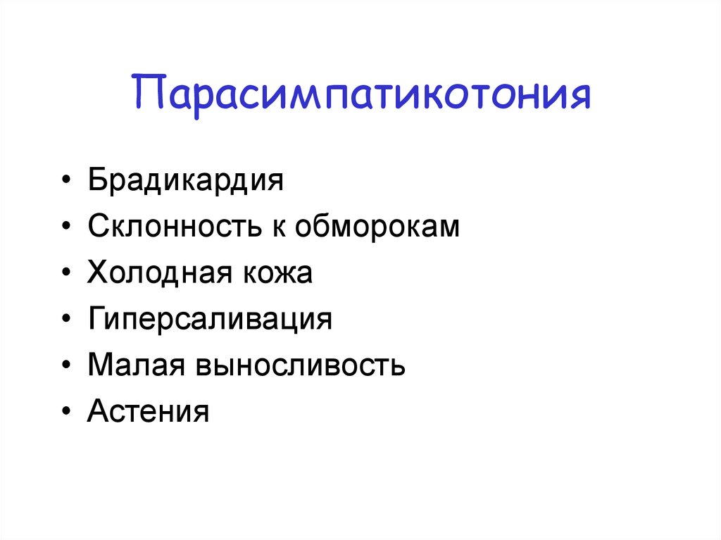 Парасимпатикотония• Брадикардия
