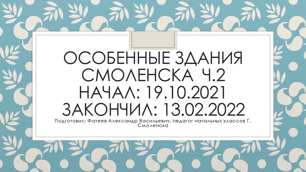 ОСОБЕННЫЕ ЗДАНИЯСМОЛЕНСКА Ч.2