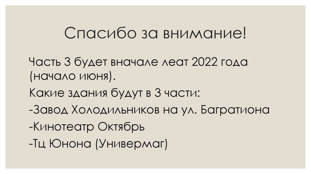 Спасибо за внимание!Часть 3 будет вначале леат 2022 года