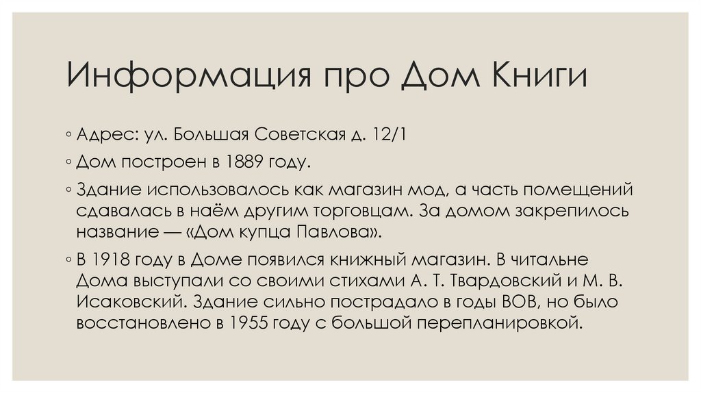 Информация про Дом Книги◦ Адрес: ул. Большая Советская д. 12/1