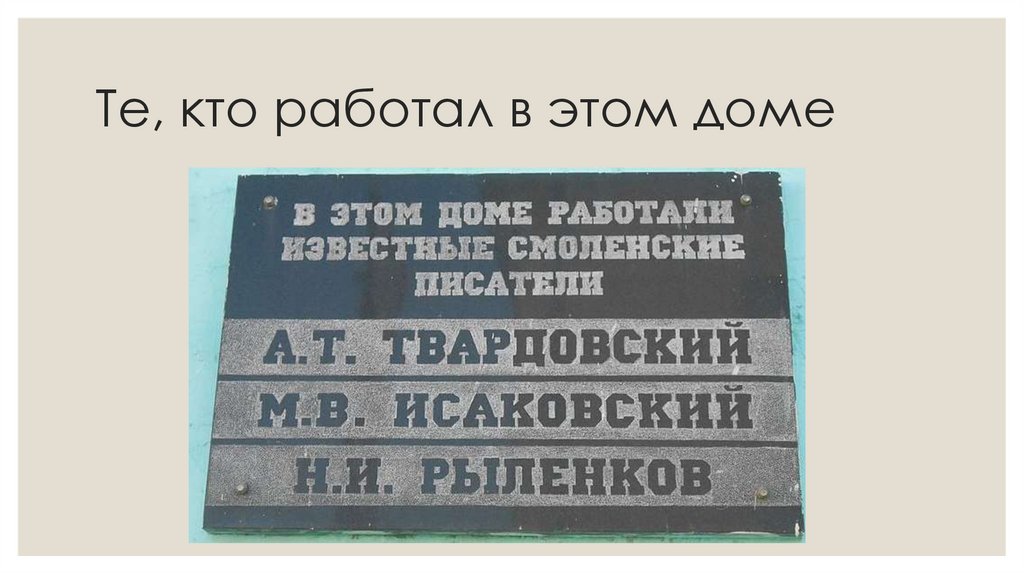 ◦ Его стены помнят А.Т. Твардовского, М.В. Исаковского, В.И.