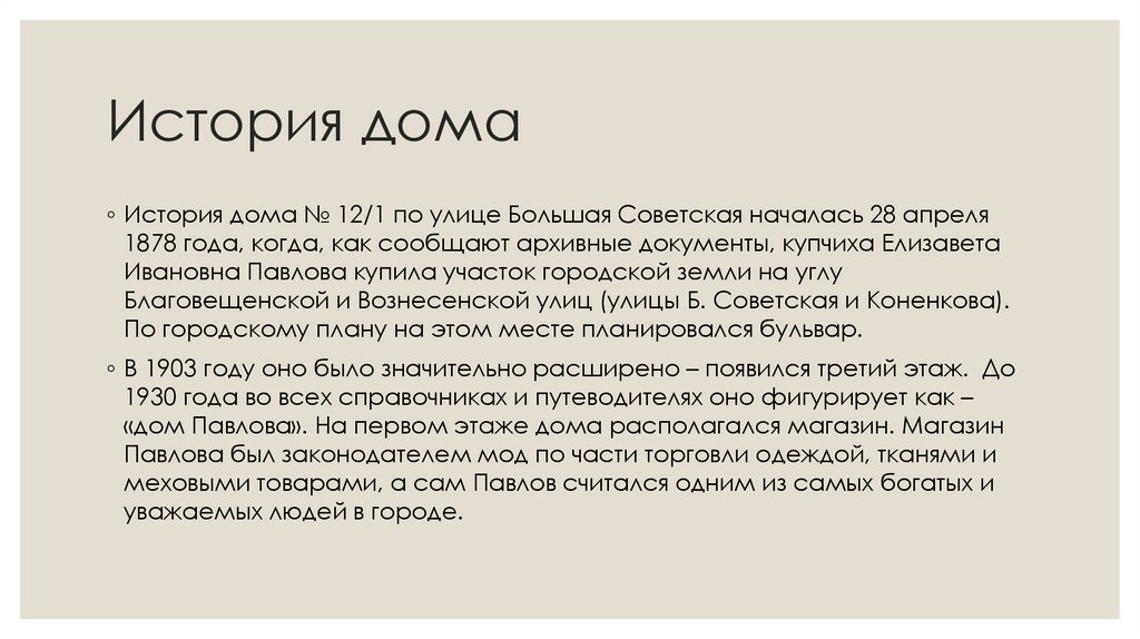 История дома◦ После революции 1917-го года и до 1927-го в доме Павлова на