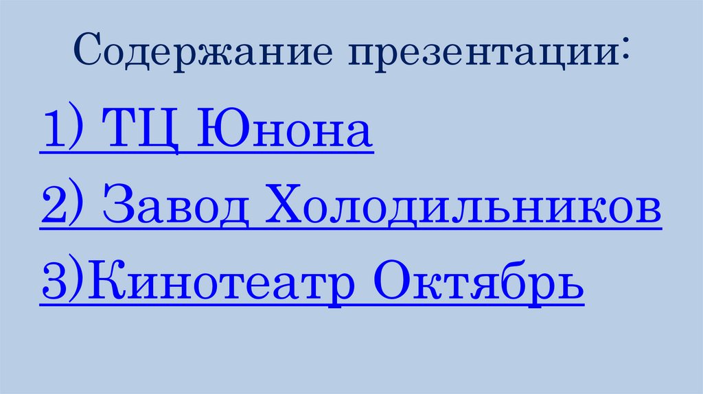 Содержание презентации:1) ТЦ Юнона