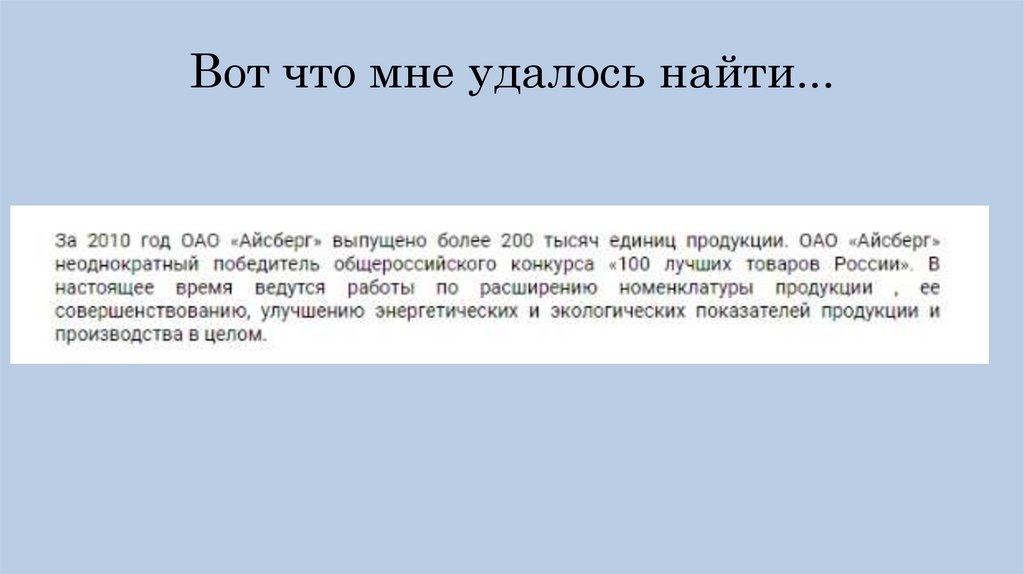 объем выпускаемой продукции ОАО «Айсберг»
