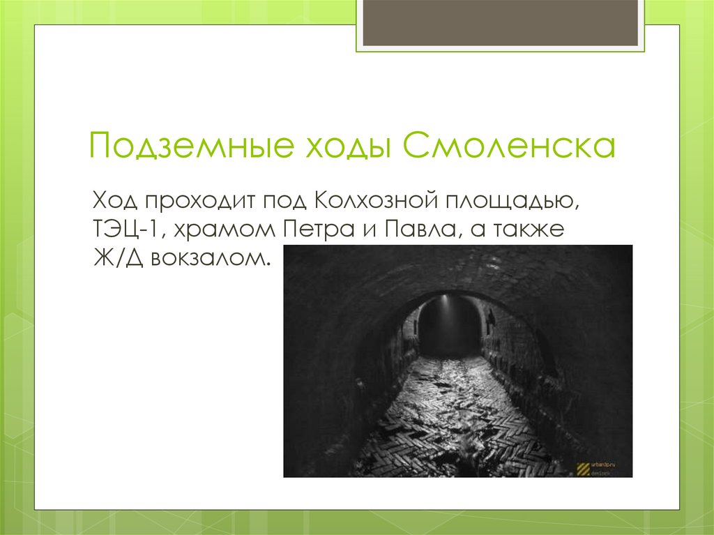 Подземные ходы СмоленскаХод проходит под Колхозной площадью,