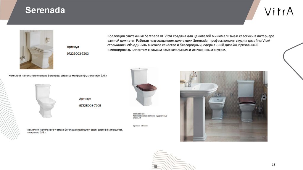 ванной комнаты. Работая над созданием коллекции Serenada, профессионалы студии дизайна VitrA