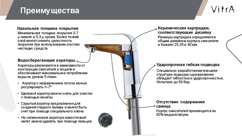 отсутствием пор на поверхности. Поэтому изделия VitrA не впитывают бактерии и грязь, а также бытовую химию и сохраняют первоначальный цвет