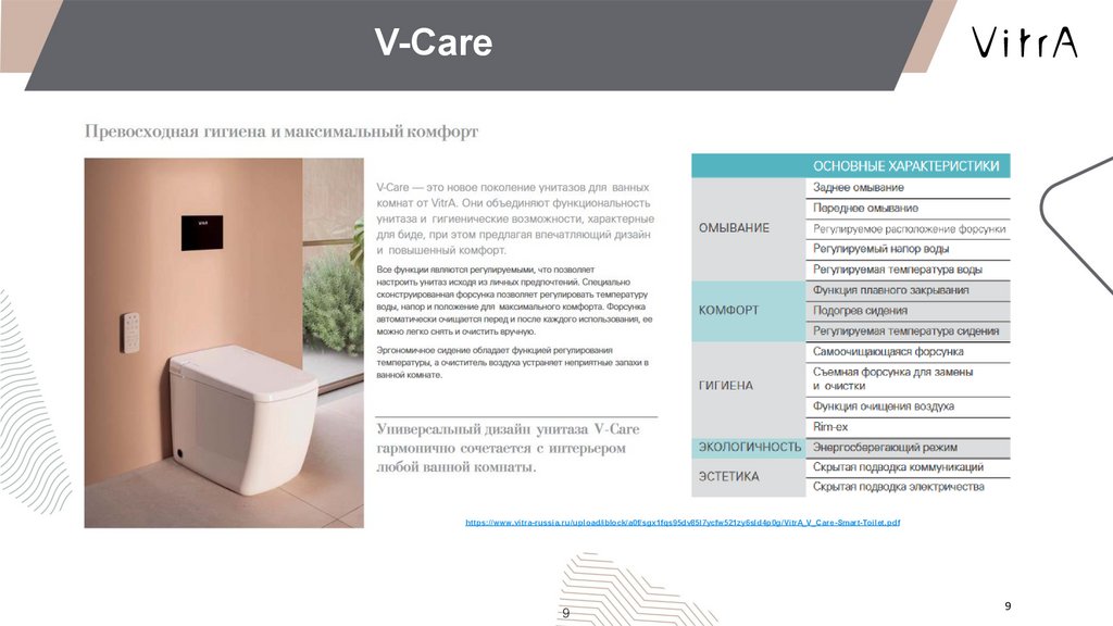 V-Carehttps://www.vitra-russia.ru/upload/iblock/a0f/sgx1fqs95dv85l7ycfw521zy6sld4p0g/VitrA_V_Care-Smart-Toilet.pdf